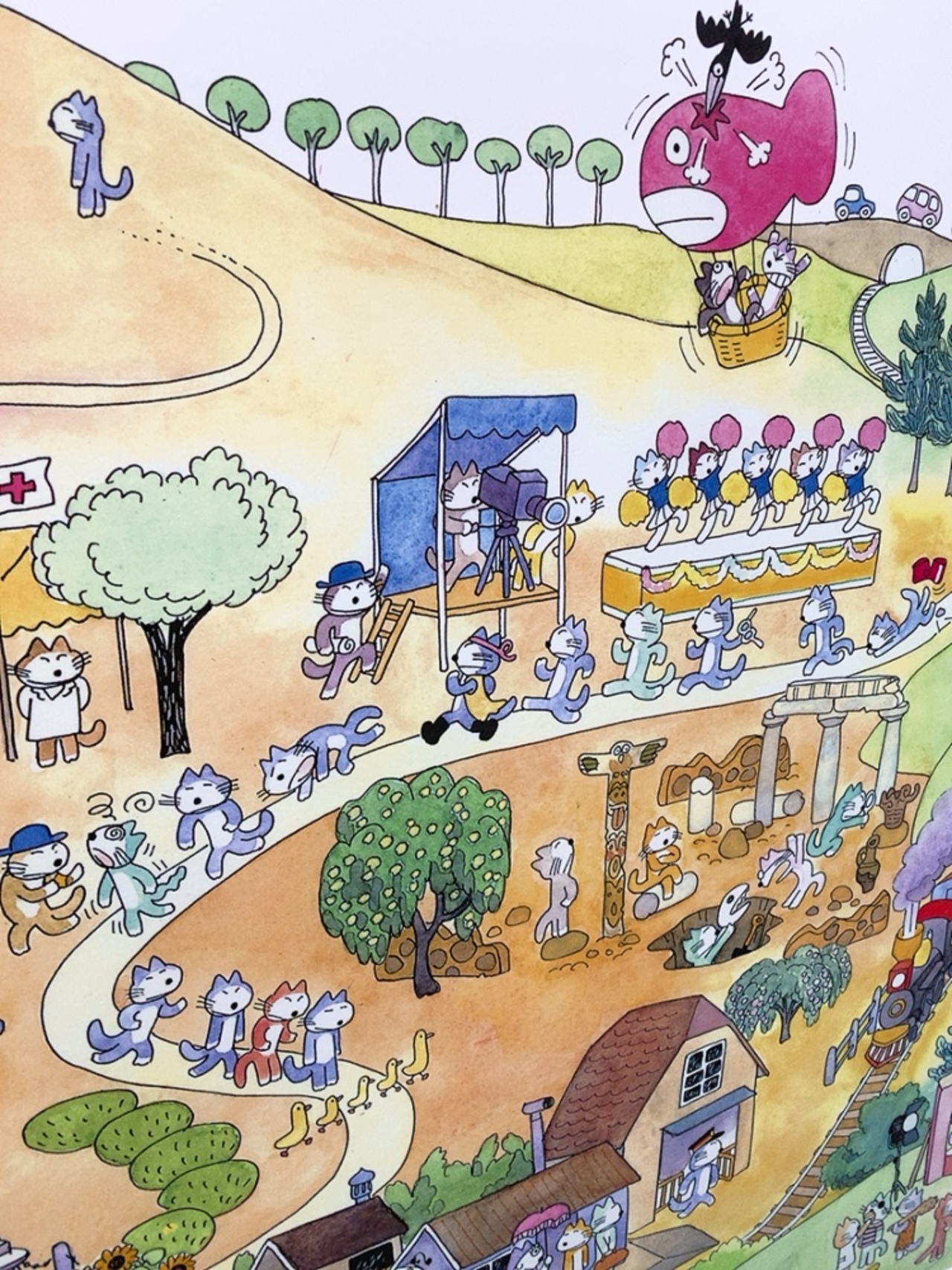 幼稚園児の時に読んだ、「11ぴきのねこと〇〇」シリーズの絵本が好きだったことをめちゃくちゃ覚えてて、その絵をたくさん見ることが出来てなかなか充実の展示でした。 グッズショップでも懐かしい絵本の絵のグッズをたくさん売ってて見てるだけで楽しかったです。