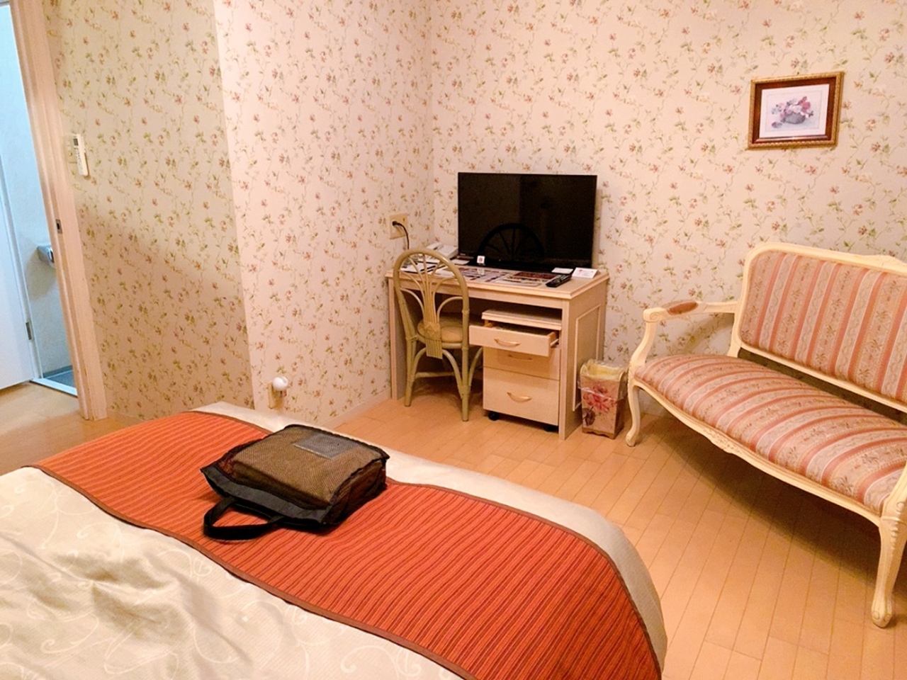 建物自体は新しいわけじゃないので、お部屋お部屋も広く、ソファもピンクでカワイイ感じでした。 最近出来た施設じゃないので、こればっかりはしょうがないのですが、ベッドも枕元にはコンセントはありません。 お部屋にもユニットバスは付いていましたが、洗面所とトイレ以外は使う事は無かったです。