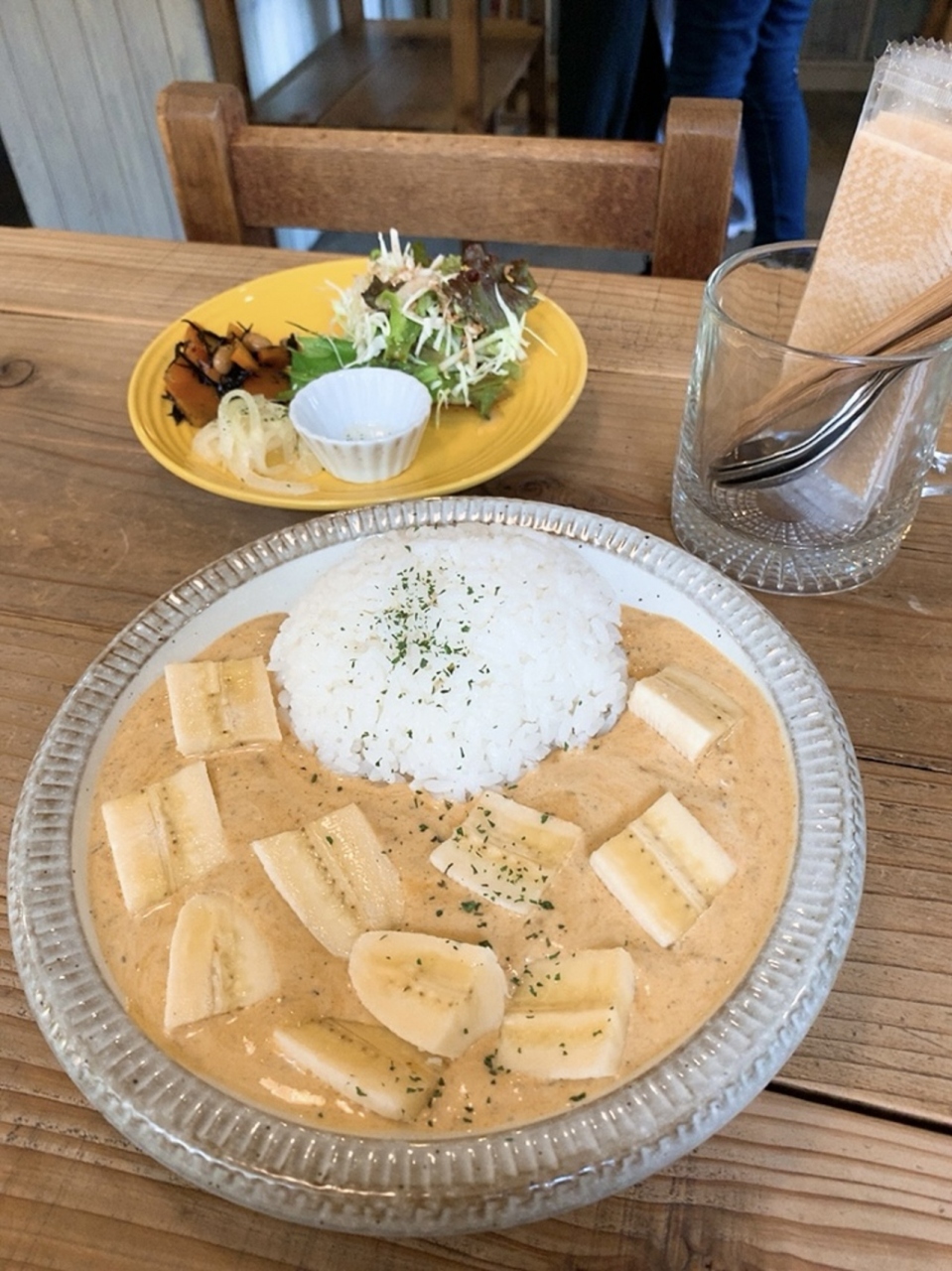 到着が2時くらいになってしまったので、カレーもスイーツも既に何種類かのメニューは売り切れになっていましたが、私が狙ってたバナナミルクカレーはまだ残ってました! バナナミルクカレーはやっぱり見た目のインパクトが凄いですね! カレールーはそこまで辛くなかったので、辛いのが苦手な私でも完食出来ました! カレーと一緒に注文したヨーグルトドリンクはかなり濃厚で美味しかったです!