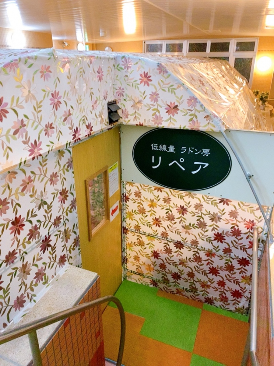 こちらの施設は、日帰り温泉も人気な色々な種類の温泉施設が有名ですが、奥にあるホテル棟も、南欧をイメージした、女性ウケしそうな雰囲気で気に入りました。 温熱療法館とは、通路で繋がっていて、入口で下足は預けているので、施設のスリッパで移動する形になります。