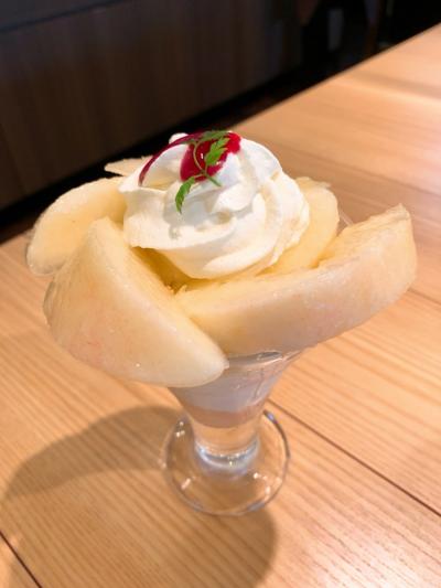 季節柄、メロンや桃のデザートが種類が多くあり、私はピーチパフェをチョイス。 桃が丸々1個分?!くらいがのってて、とても美味しかったです。 見た目もとてもキレイでした。