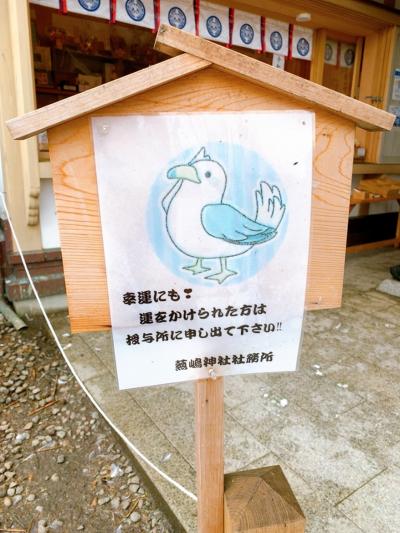 2015年11月に発生した火災により社殿が全焼してしまったようなのですが、約5年の歳月を経て再建され、2020年3月26日の例大祭に合わせて一般参拝が可能となったそうです。 ここでは、ウミネコのフン害とは決して言わず、ウミネコの"運"をかけられたと言うと、幸運な感じがします。