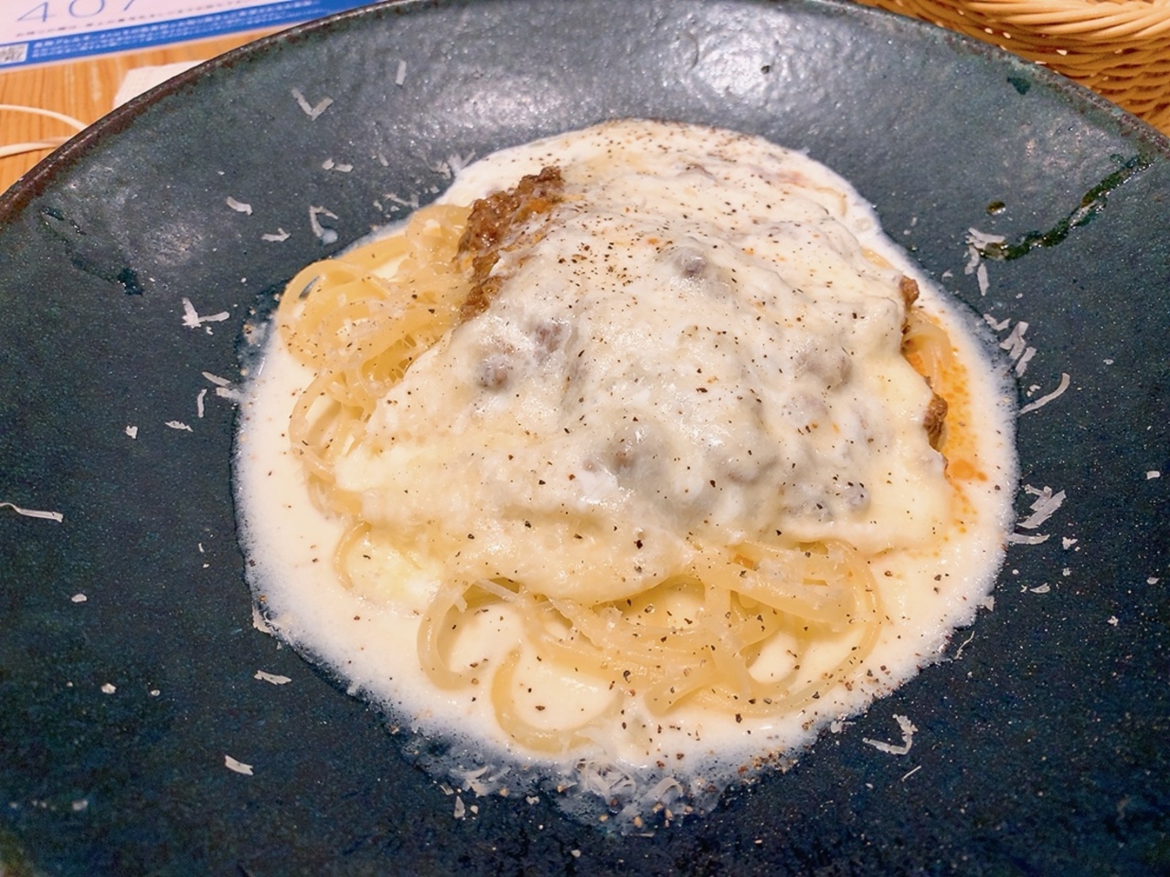 前回はカルボナーラを注文したので、今回は別のパスタを食べてみたい!と思い、チーズソースのかかったボロネーゼを注文。 生パスタは他のパスタ屋さんでも良くお目にかかる、淡路麺業の麺で、美味しい事が既に分かってます!