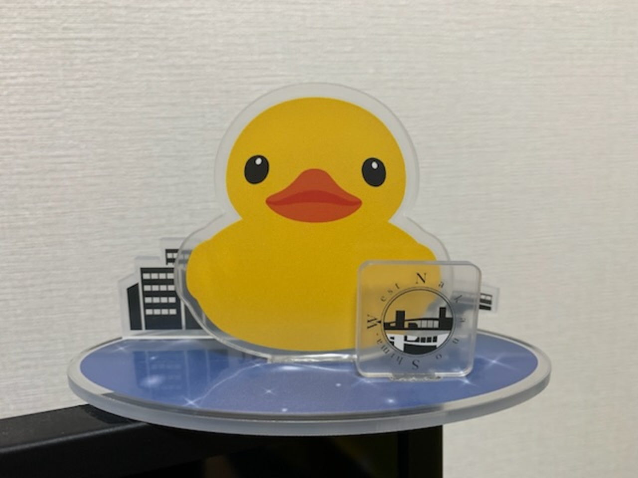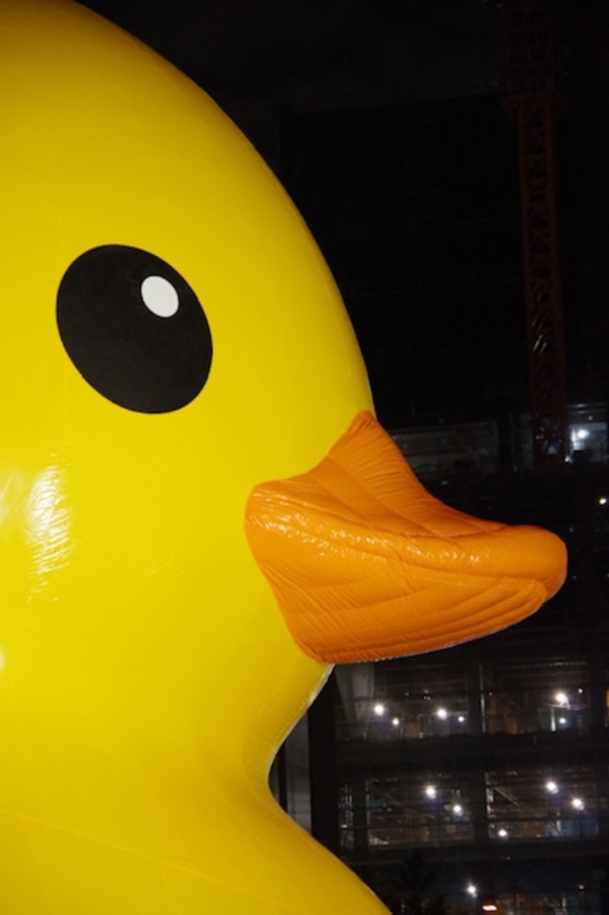 オランダ人芸術家のフロレンティン・ホフマンの作品で、お風呂に浮かべるあひるちゃんが超デカくなったバージョンが、大阪のほたるまち港にぷかぷか浮いています。 ちゃんと係留されています(笑)。