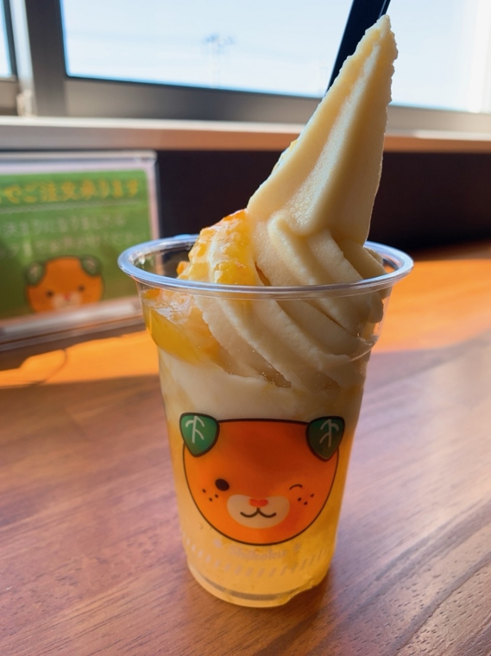 私は伊予柑ソフトを注文。 カップもみきゃんの絵柄でめっちゃ可愛かったです。 ゆるキャラ好きな人にオススメのスポットです!- 旅行時期