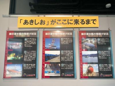 この史料館の1番の目玉は、本物の潜水艦内部を見学できる事です。 「あきしお」は、昭和60年~平成16年に除籍されるまで、実際に任務を遂行していた潜水艦です! 平成18年9月に国内最大の起重機船(クレーン船)で陸揚げされ、この場所にやってくるまでが写真と解説で紹介されてて、興味深かったです。