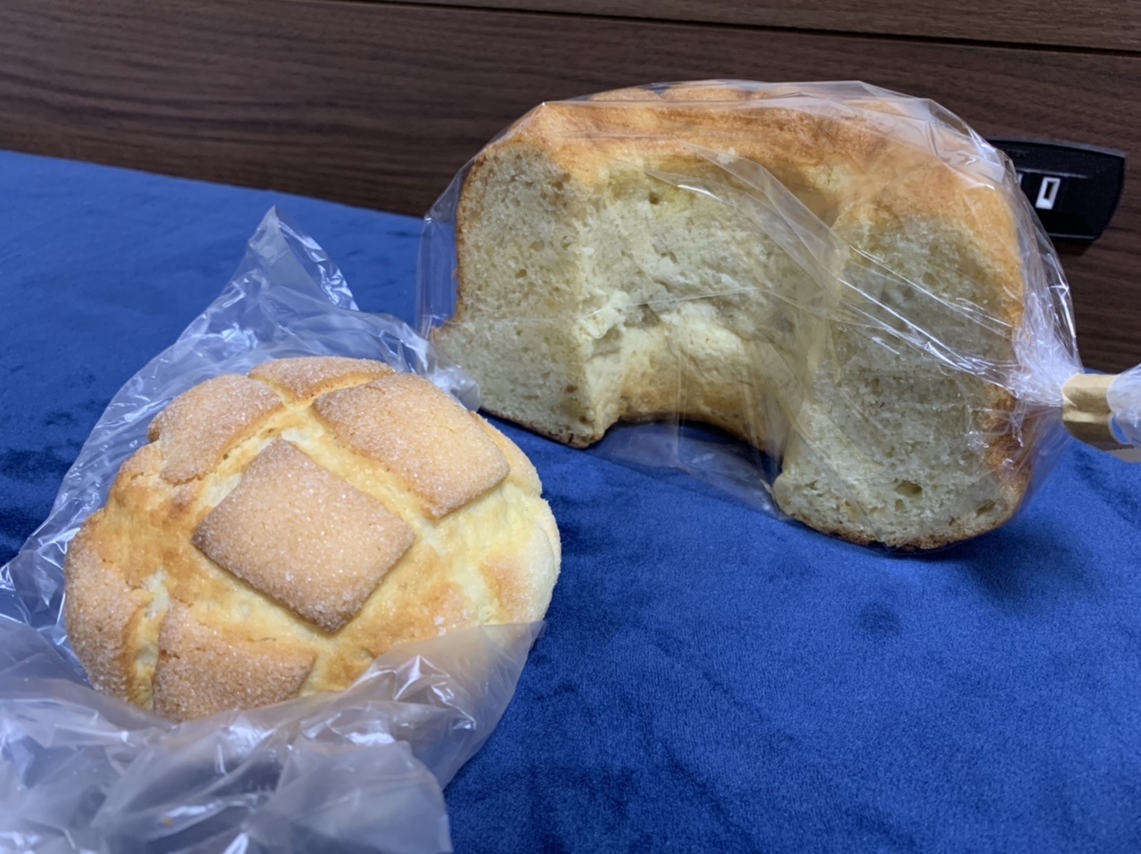 今回は、サツマイモのクグロフ(ハーフ)と、メロンパンを購入。 驚いたのはメロンパンです。 トングで掴んだ瞬間、めっちゃ固くて、私の苦手なタイプのメロンパンだったか?!と一瞬思いましたけど、試しに買ってみたのですが、ザクザクのメロンパンの皮の中は、本当にモチモチのパンで本当に美味しかったです! 店主によると、ご飯が入っているらしい! 米粉は小麦粉よりもモチモチと聞きますが、米粉ではなくご飯とは! 斬新なアイディアからこんな美味しいパンが出来るんだなーと感動。