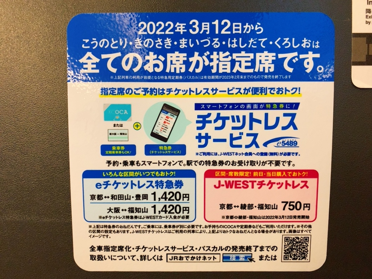 天橋立を訪れた時に、京都→福知山を乗車しました。 コロナ禍で乗客も減っているのか、1週間前に予約しましたが、指定席は余裕で取れました。 eきっぷでちょっとだけ安く取れました。