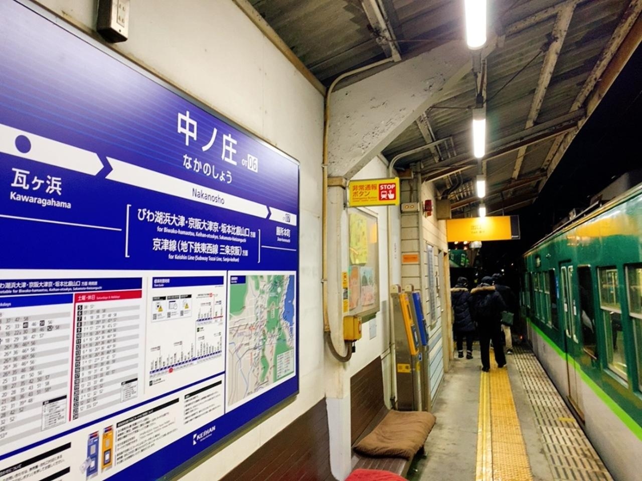 JRの石山駅(京阪石山)からも、膳所駅(京阪膳所)からも数分でアクセスできるので移動には便利だと思います。 ただ、無人駅なので、お得なきっぷなどはこの駅では買えないので事前に有人駅で買っておかないとならないのがちょっと面倒かな。