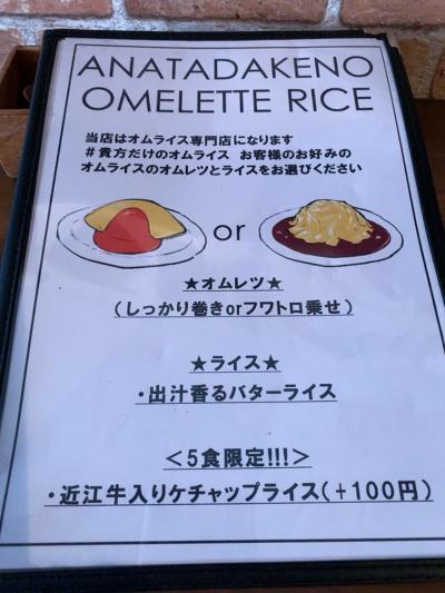 オムライス専門店で、美味しいですが、お店として成り立ってない感が・・・。