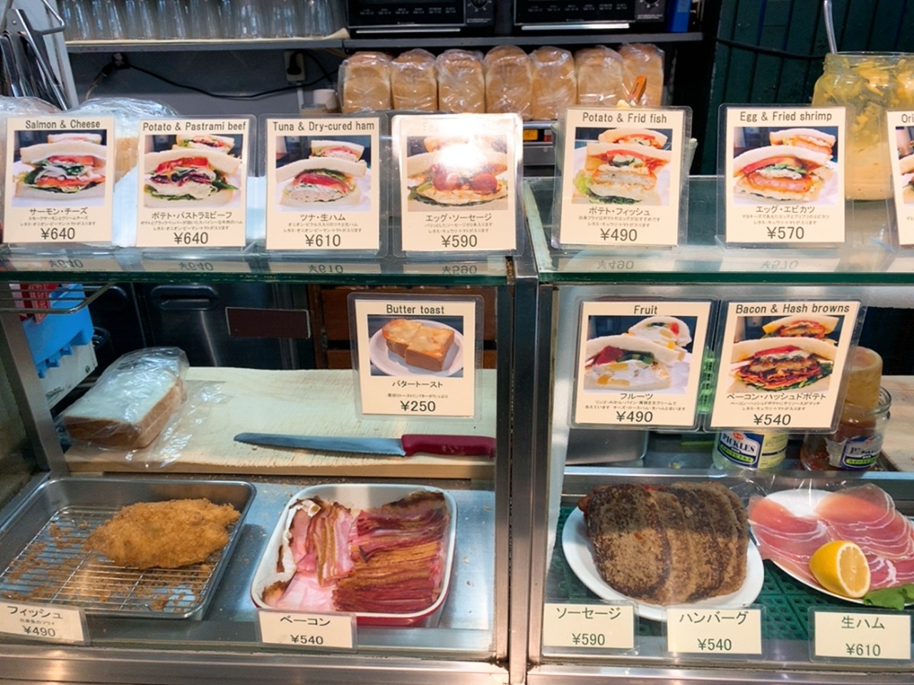 2種類の具を選び、そのうち高い方だけ請求されるというシステム。 今回私は、エッグとハムのサンドイッチを食べたくて、レタスとキュウリ抜きで作ってもらったのですが、代わりにトマトを多めに入れてくれました。 超ラッキー。