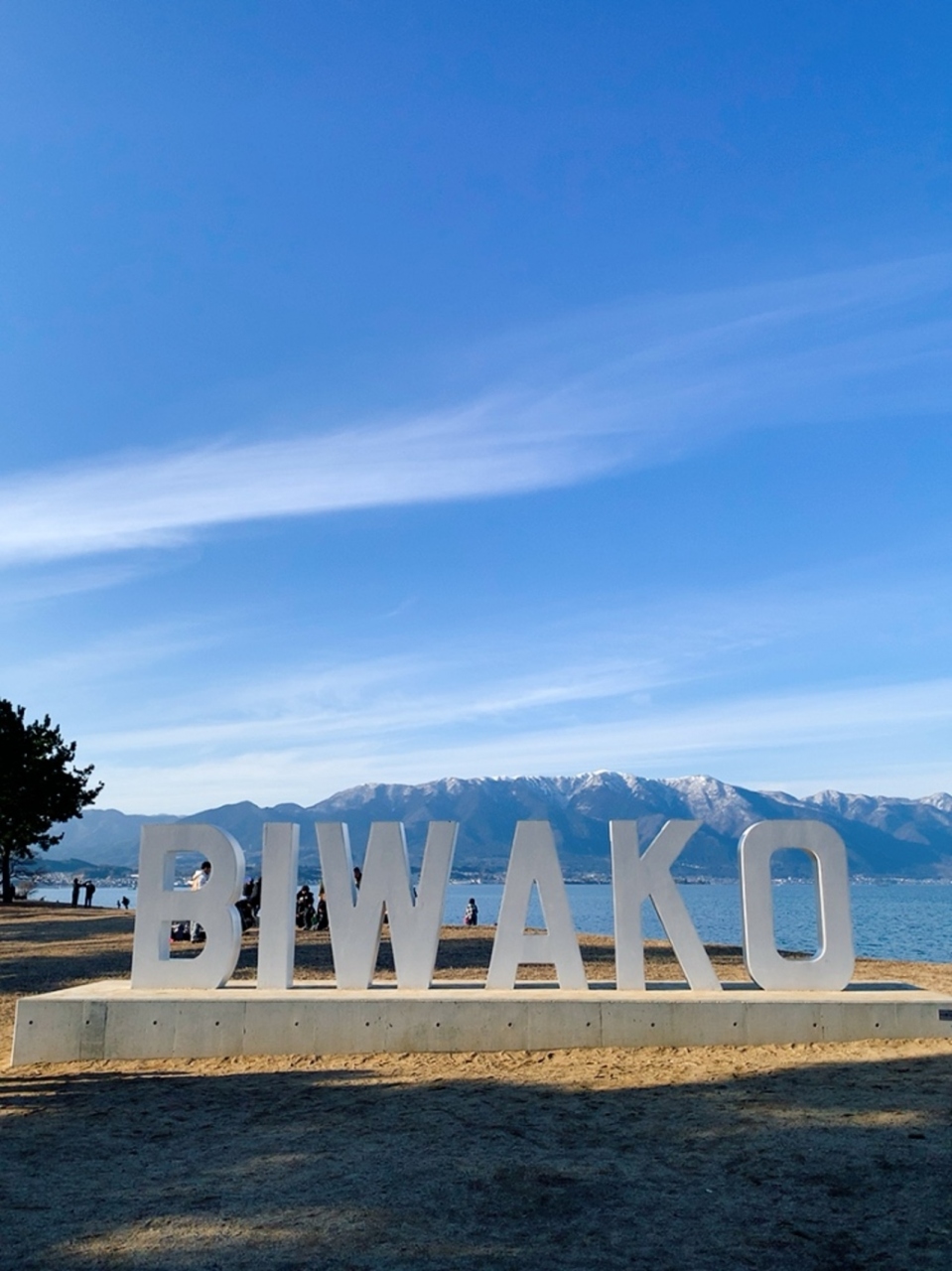 第1なぎさ公園は1月になると菜の花がとてもキレイですが、第2なぎさ公園にはBIWAKOモニュメントがあります。 大きなモニュメントなので、OやIの文字の上に立ったりして写真撮ってる方もいました。 お天気の良い日なら、琵琶湖と比良山系をバックに良い写真が撮れます。