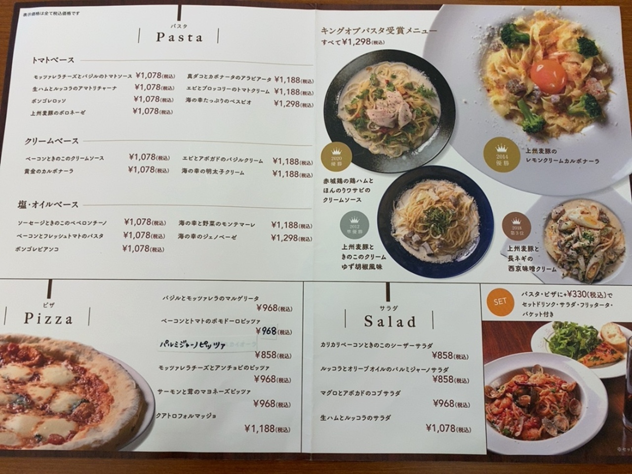このお店は、パスタやピザ、オムライスなどを扱う洋食レストラン。 私が好きなメニューがたくさんあるから好きなはず!と思って、6年以上前に滋賀に引っ越してきたときに初めて入ったのですが、何故か私の好みに合わず、それ以来行ってなかったです。