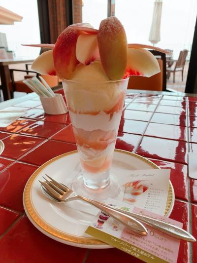 夏休みの帰省旅の帰りに山梨を訪れた時にカーシェアしてフルーツパーク富士屋ホテル内のカフェに行きました。 こちらのカフェの目玉は、季節ごとに変わるフルーツパフェなどのメニュー。 桃の時期がお目当てでした。 2019年にも行ったのですが、その時は事前に調べていた桃パフェの時期が数日前に終了してしまってて、葡萄パフェに変わってしまってた事もあり、2年後にリベンジしました!