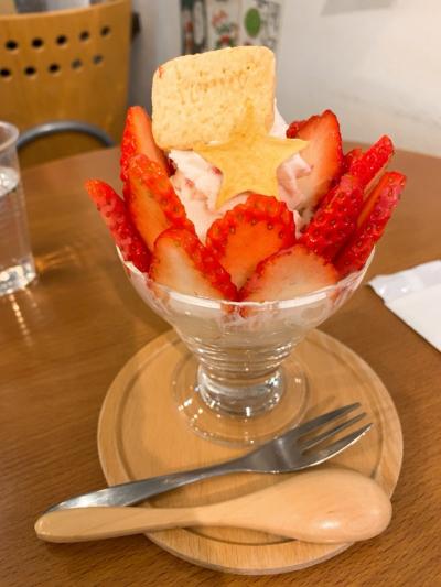 今回は、フルーツパフェを注文。 その日のフルーツパフェは、3種類から選べます。 いちごパフェを選びましたが、たくさんのいちごがのってて幸せ気分♪ ミニサイズですが、ちょっと甘いもの食べたいな~って時にはちょうど良いサイズかもしれません。