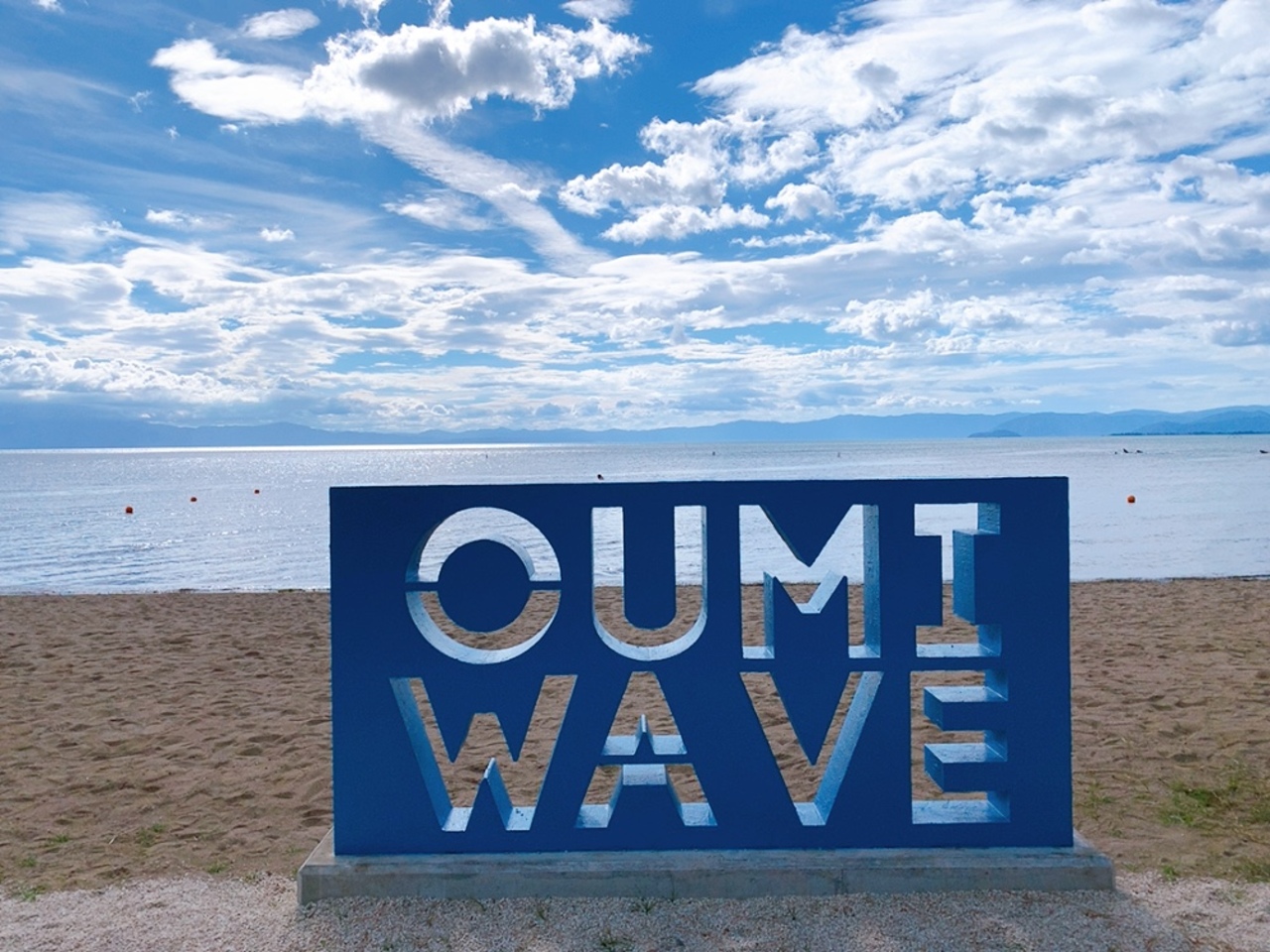 OUMI WAVEというモニュメントが琵琶湖沿いにたっているので、良い写真撮影スポットでもあり、晴れた日や夕暮れ時は良い写真が撮れます!