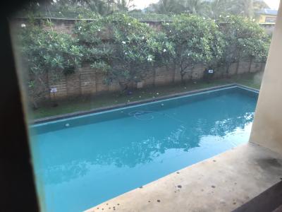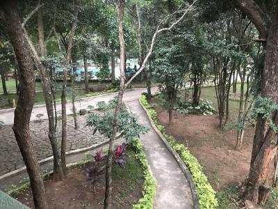 木々の多い中庭には、プールもあります。