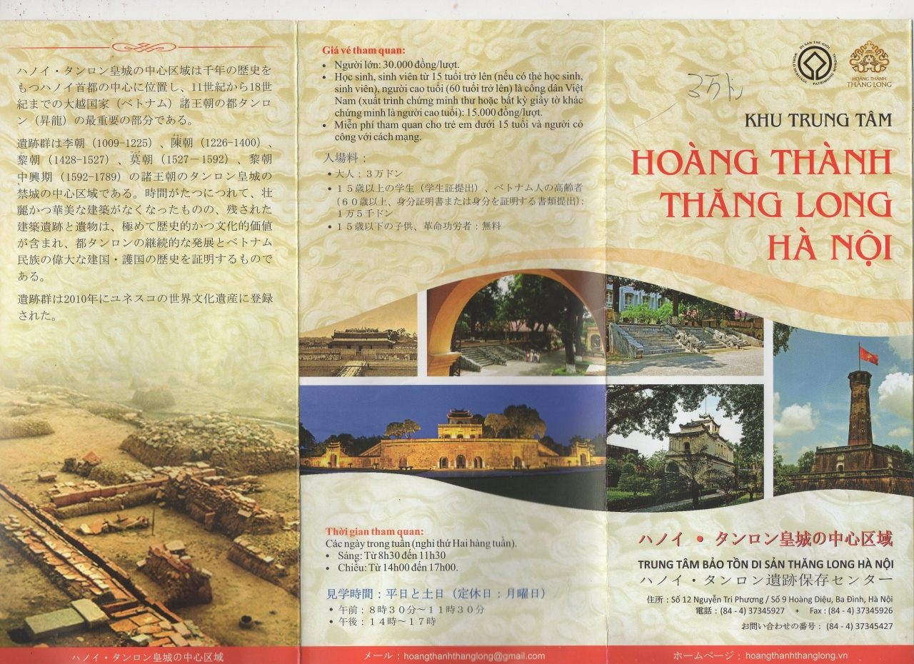 一通り見て、少し離れた古城の発掘現場に行ったらその場所の係員に3万ドンを払うように言われた、3万ドンを払ったら、日本語のパンフレットをもらった。そこには全区域の入場料は3万ドンである旨が書いてあった。