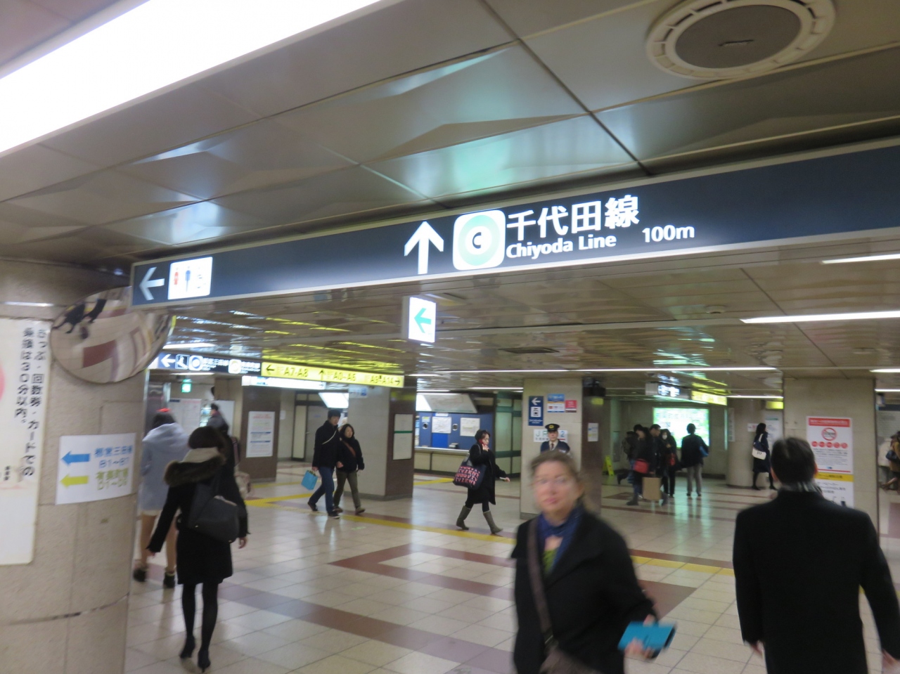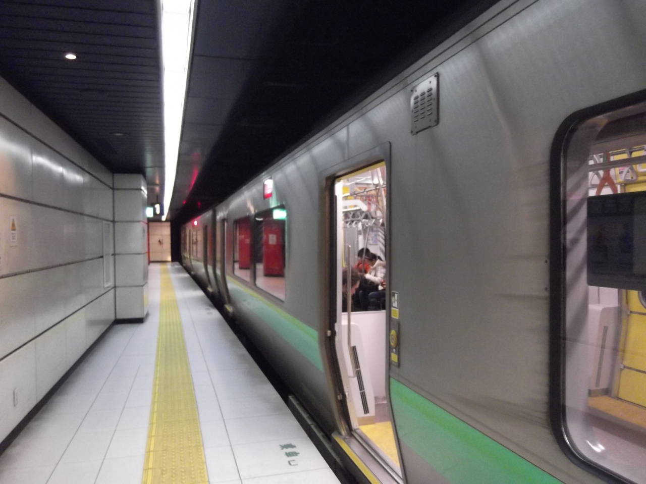 有楽町線の有楽町駅です。1面2線の島型ホームとなります。車両は西武池袋線が乗り入れています。此方の駅から日比谷駅へは地下通路で繋がっています。東京メトロへの乗り換えはオレンジ色の改札機を通ります。間違えると、初乗り運賃が適用されるので割高になりますので、注意してください。都営三田線と外に出る方は 普通の改札口から出ます。