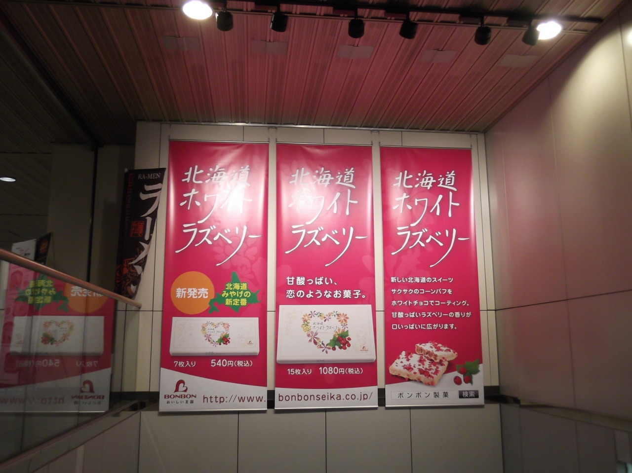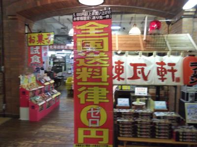 JR札幌駅の西改札を出たら、壁に機関車の時計が飾ってあり、それに釣られてしまいました。此の飾りの有る辺りは人込みがすごく、真正面から写真を取ろうと思ったのに、待ち合わせの人や通行人で撮影が難しかったです。多分、撮影していた私、通行人からすると邪魔だったのでしょうね。土産物の種類と価格は特に書き込むような特筆事項は有りませんでした。