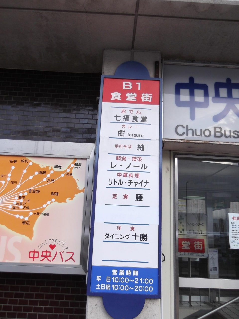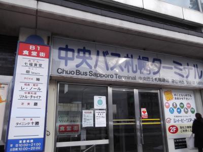 大通り公園からテレビ塔を抜けたところにバスセンターがありました。札幌駅からも離れているので、ちょっと不便かと思います。テレビ塔まで繋がっている地下道からもアクセスできる雰囲気が無いので冬場は厳しそうですね。建物の地下には食堂が入っていました。