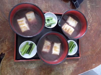 上越国際で滑っていると気になるのが「おしるこ茶屋」です。リフト乗り場の近くにあるのですが、普段は込み合っていてスル―していたのですが、何故かボードと板の数が少ない。中をのぞくと人がまばらなので休憩する事にしました。お餅入りの御汁粉をオーダーしました。家の子供達に・・・子供たちが持ってきたときに一言「此の餅、サトーの切り餅だよ!」自家製じゃないのは知っているけど、客商売なのだから手の内を見せるなと思うのは私だけ?