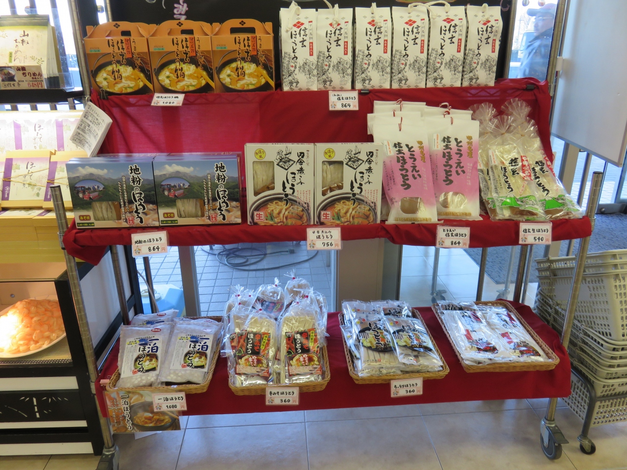 夜、7時頃に上りの諏訪湖SAに立ち寄りました。雪が舞っていて寒かったせいか、建物の中でしか営業していない感じでした。建物の周りので店が無いと、こんなに暗いとは思いませんでした。土産物を見ると、昔ながらの物が少なくなり、新しい商品やブランド品が並んでいました。「アナと雪の女王」のオルゴール、「信州アルクマ蕎麦」、「松本山雅の商品」など時代に合わせた品揃えと言った感じでした。