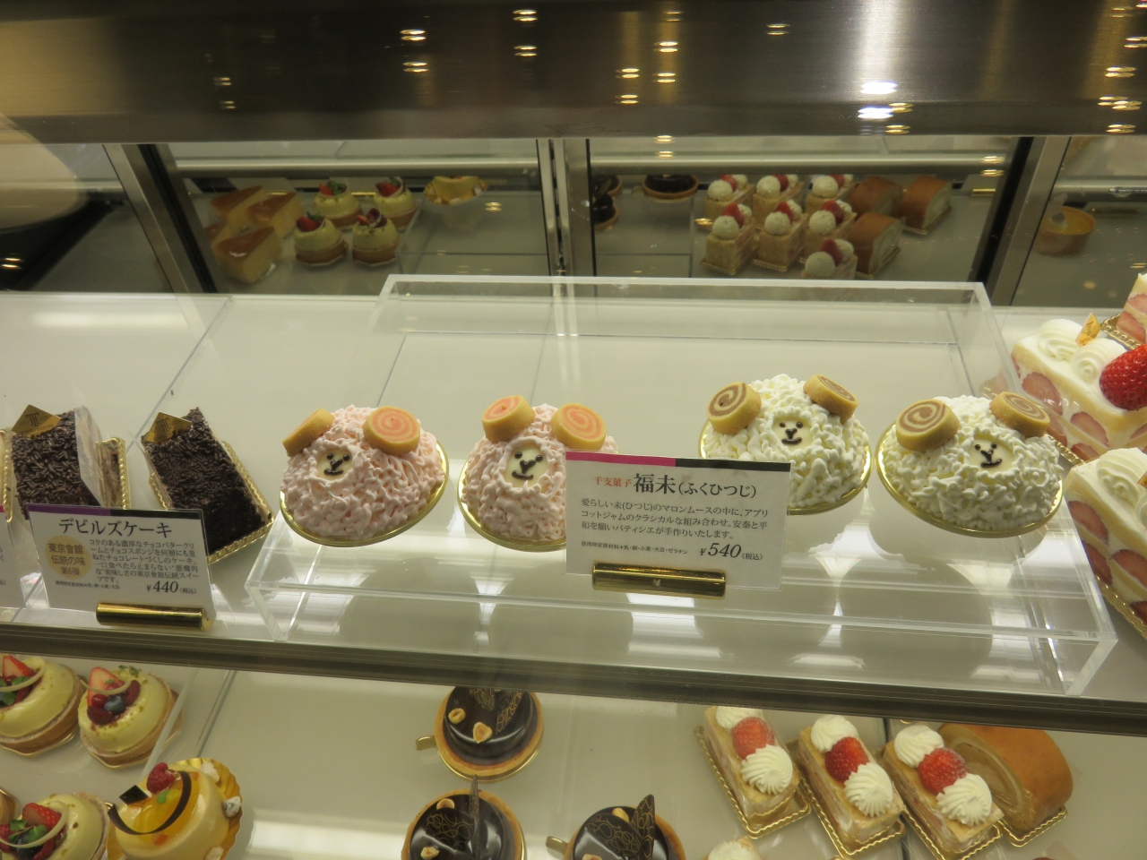 今年の干支にちなんで、東京會舘のスウィートプラザで「福未」というケーキが1月限定で販売されているとのネット情報を見て、たまたま、お台場方向に遊びに行ったので立ち寄って購入してみました。マロンムースの中にアプリコットジャムを使用したケーキだそうで、白とピンクがありました。2個ずつ並んでいたので、全て御買い上げしました。家族で食べましたが、ほんのりと甘さがあり、しつこくない処が良かった。食べても、お腹にずっしり来ることも無く満足です。1個540円が絶妙な価格です。