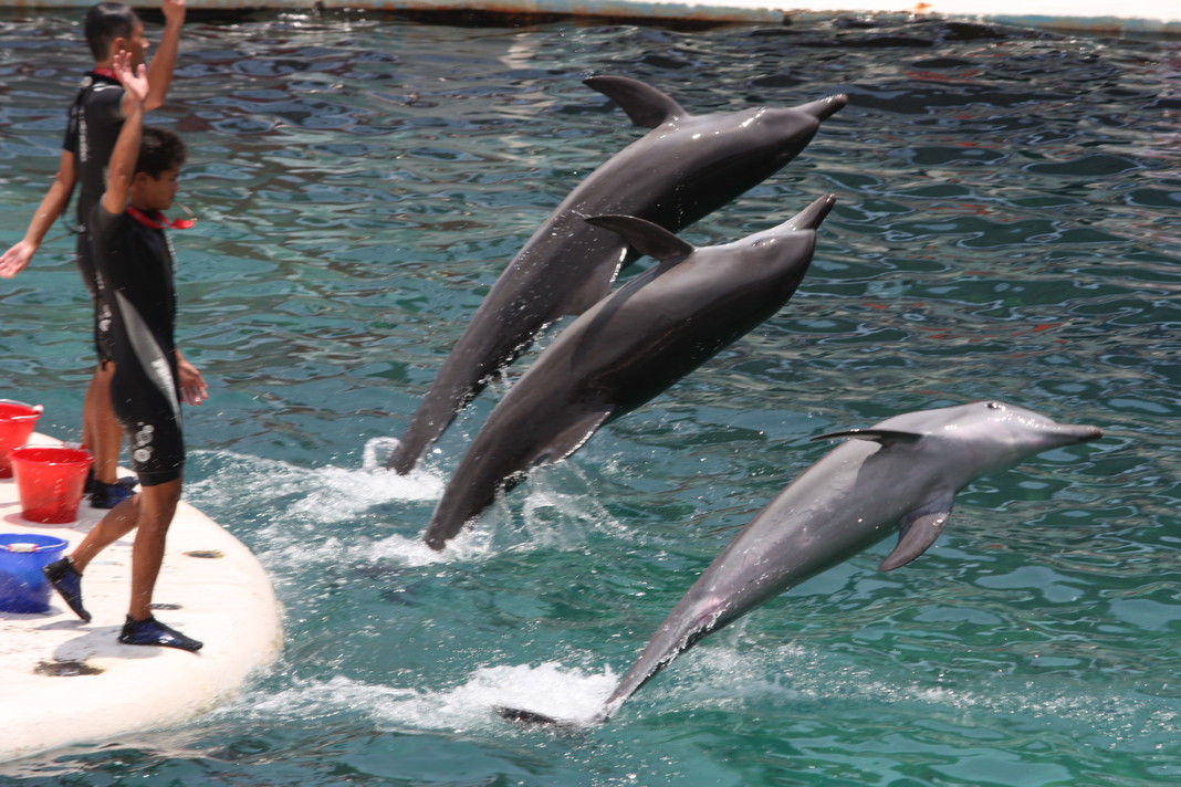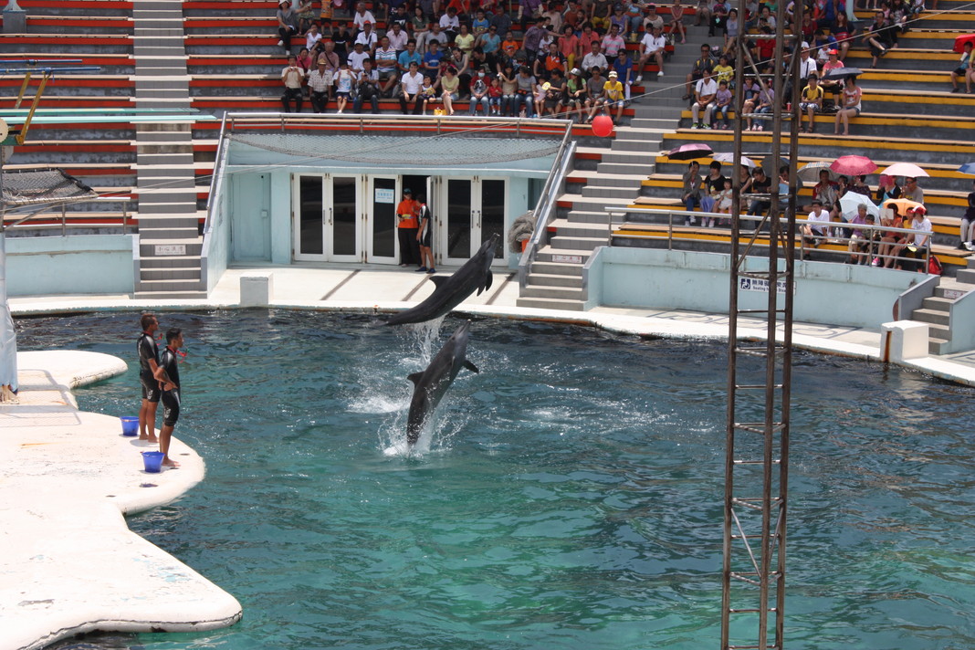 野柳特定公園の脇にある水族館です。台湾の観光協会で頂いた無料券があり台北近辺では此処しか使えないので立ち寄ってみました。従業員はフレンドリーでチケット見せると、手招きで出口から入れてくれました。どうやら、ショウが始まっていたみたいでショートカットさせてくれました。感謝。高飛び込みなどのパフォーマンスの後、定番のイルカショウとなりました。水族館の展示は とてもお金を払って見る展示とは思えませんでした。お金払っていませんが・・骨の展示では一寸寂しい。土産物も大したことなく、出口へ進むと、先程の従業員さんが半券を返すために待っててくれました。使わないので要らないのですが、この行動に感激です。「カムシャ!」此の方の行為に対して☆1.5プラスしました。