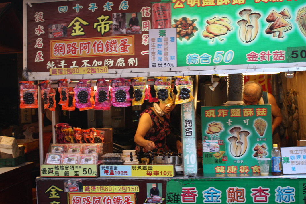 夜市を堪能すべく基隆へ出てきました。日没まで時間があるので、雰囲気にひたりながら食事でもと思っていたのですが、提灯に火がともり始めると、人が集まりだし、気が付いた時には身動きできなくなりました。何とか食事しましたが、雰囲気に・・・どころではなく、さっさと食べて席を空けないと、という雰囲気を味わってしまいました。此方のイエシー(夜市)は食事がメインでした。