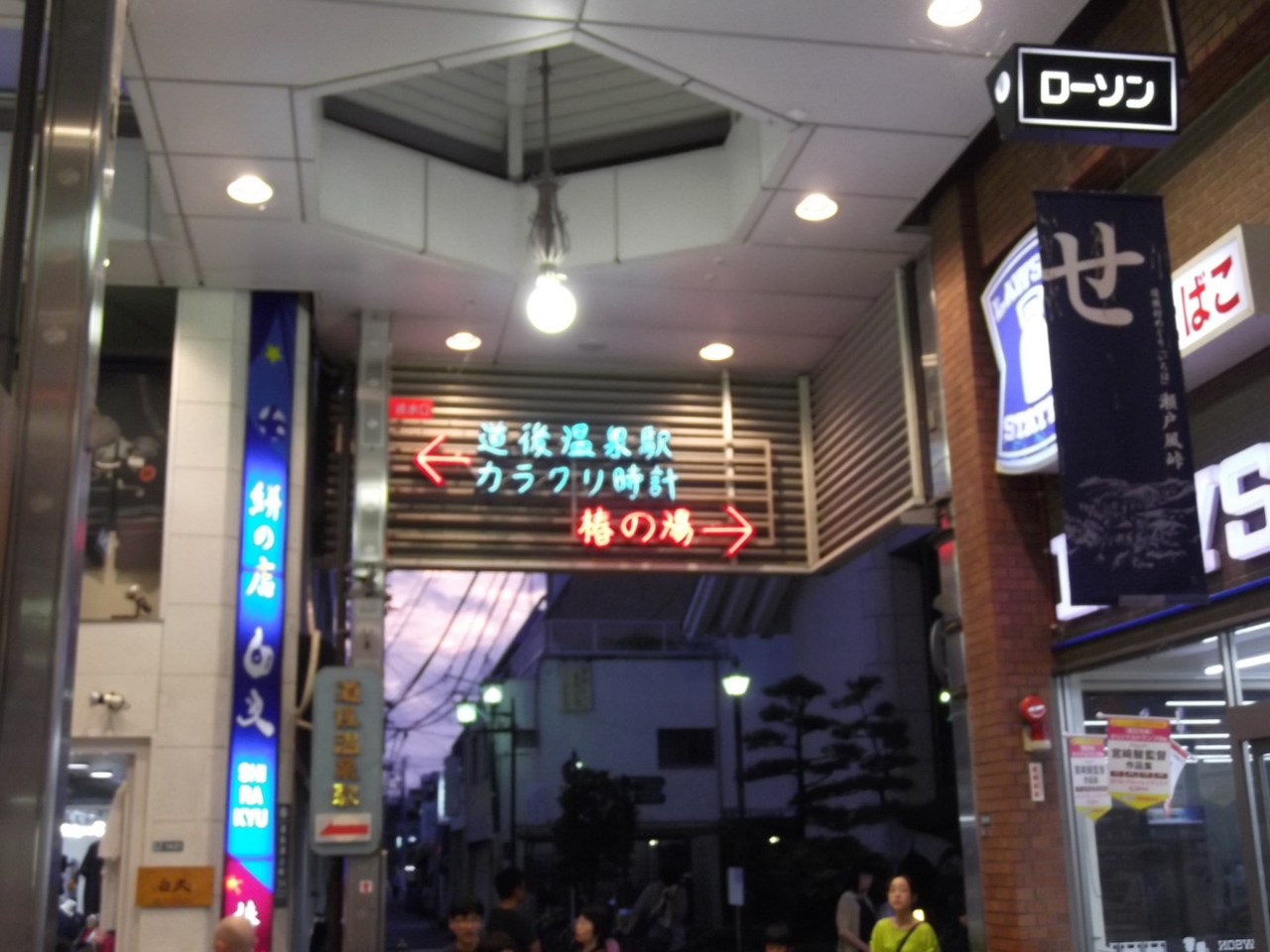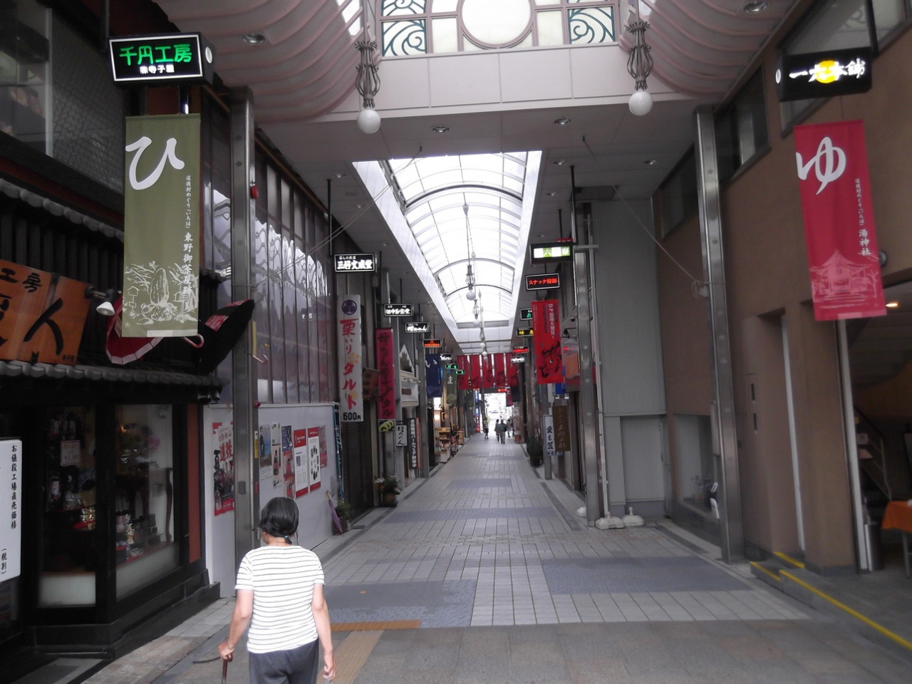 道後温泉駅から道後温泉本館までのアーケード式の商店街です。坊っちゃん団子の店とかゴマ製品に特化した店、今治タオルの普及品を扱う店など、チョコチョコと変わった店があり、見ていて飽きませんでした。しかし、14時頃になると一斉に店の前で水撒き、清掃を始めているのにはビックリしました。この商店街が少し傾斜があるので、一軒が水撒きをすると隣に流れるので、一斉にやるのかと思います。でも、お客さんがいる14時にやるのが謎です。