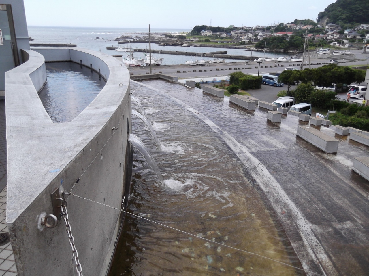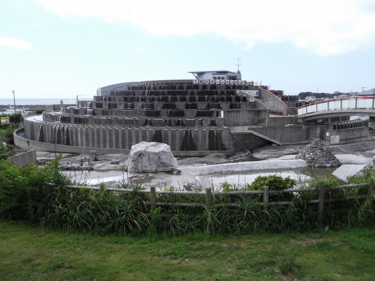 海沿いいを走行中に立ち寄りました。外観が奇抜で、何をイメージして要るのか良く解りませんでした、全体的には ピラミッド的な段々畑風で、上から段々畑に海水を流し続けているみたいです。橋を渡って施設に入りますが、2Fに繋がっていて、此処にレストランがあります。階段で下りると土産物屋と屋外に通じる扉があります。3Fは展望台で直接、駐車場に繋がる橋にもアクセスできます。規模は小さいですが、子供が喜びそうです。