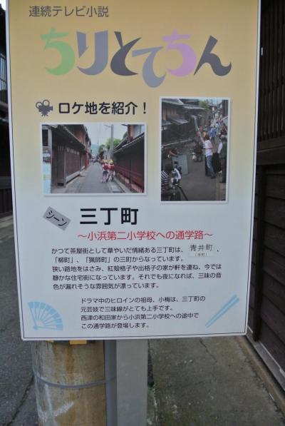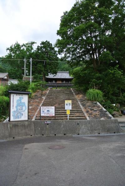 お初さんの墓を見に立ち寄りました。景観地区から小浜線に向かっていくと確かに場工事は見えるのですが、参道は小浜線に阻まれ、左の小道(?)に迂回させられます。小浜線のガードをくぐると左手に「滝の水:湧水」があります。そこから、門まで上り坂です。本堂は近代的なコンクリ造りで・・・左の小道で「お初さん」を目指しましたが、また参道が寸断されています。27号線(バイパス)が横切っているので左わきのバイパスのトンネルの上まで上がり、旧参道に戻り御墓です。御墓はバイパスを走る車の音で騒々しいです。きっと、お初さんは泣いていると思います。