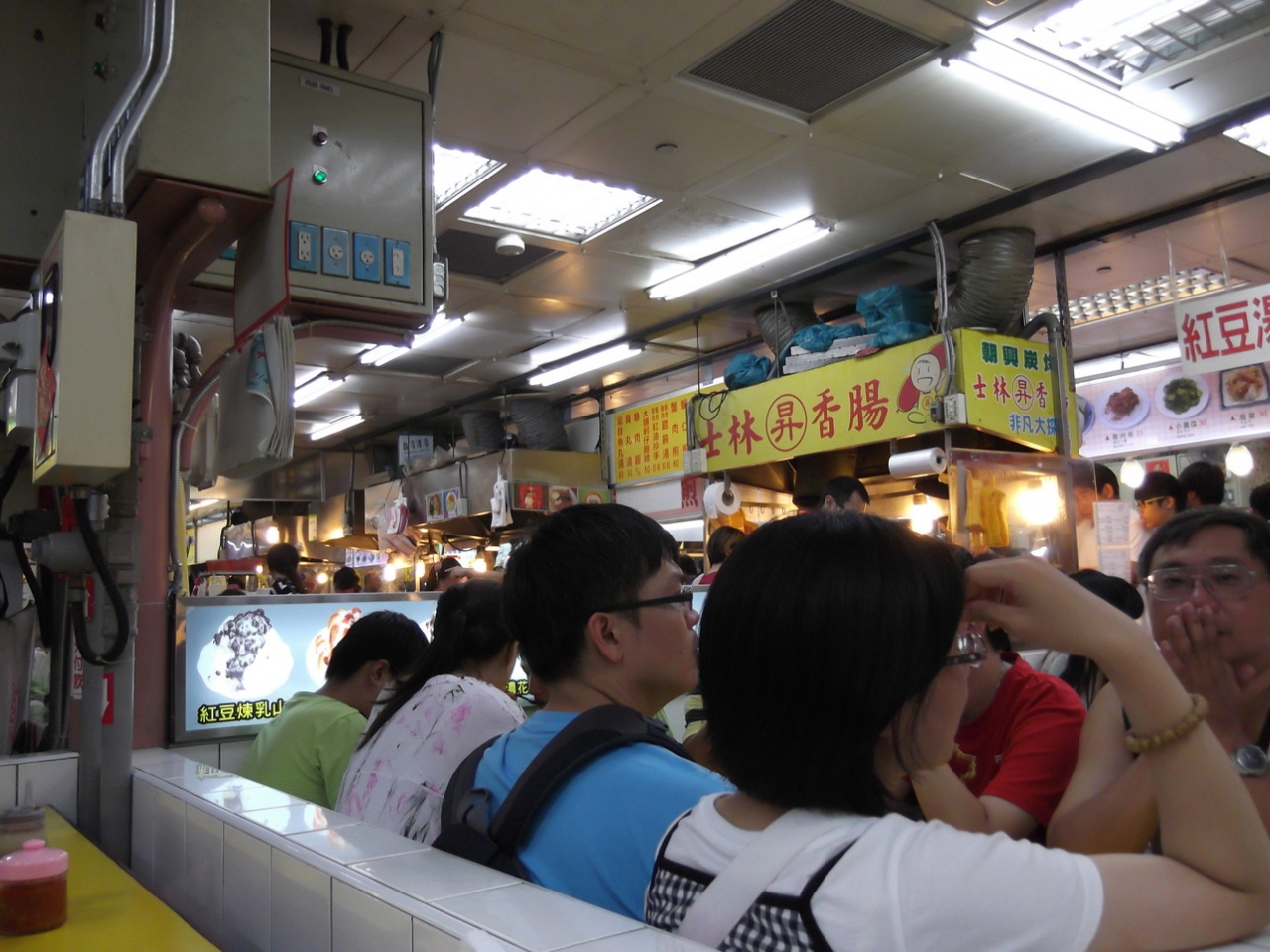 台北へ行くと御土産を買いに良く遊びに行きます。但し、地下にある食堂街は 何とも言えない雰囲気です。良い意味では 活気があり、人々が溢れています。また、天気を気にしなくていいです。更に換気設備が確りしているので、近くに臭豆腐があっても強烈な臭いは 感じません。ここは 観光名所的な要素があるので、食べないけど雰囲気を味わいに来る観光客が多い場所です。したがって、食事に来る人にとっては迷惑な環境です。地下であっても屋台のテーブルみたいなところで食べるので少し埃っぽくなります。最近は ここで食事をするより周辺のお店で土産を買ったり、フルーツを食べる方が好きです。