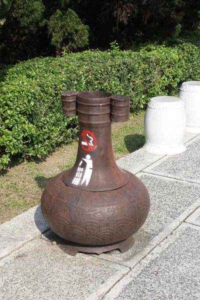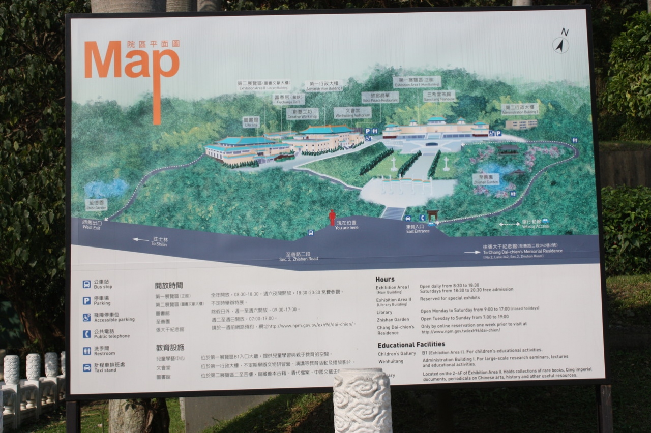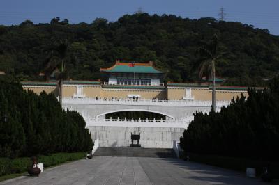ここの目玉と言えば「翠玉白菜」、「肉形石」だと思います。こちらは 3階のフロアーにあります。ここからは 個人で行く方が対象になります。まず、入り口でチケットを買ったら、入り口の反対側に音声案内装置(100NT$)の貸し出しがありますので、ゲットしてください。展示物に番号が付いていて、その番号を入力すれば解説してくれます。日本語の装置を借りてくださいね。で、入り口を入ったら、番号を無視して3階へダッシュしてください。多分列ができていると思いますので、並んで先の2点を堪能してください。堪能の仕方は 多分ツアーの人たちと一緒に見学エリアに入れられると思います。振り返ると、入場制限がなされ、後の人は待っています。この時、ツアーの人と一緒に展示品を見ないで、ツアコンが旗を持って出口に向ったら、直ぐに展示品の一等地にかぶり付いてください。気が付けば次の客が貴方の後ろから覗き込んでいるはずです。適当なところで場所を譲り出口へ向かい、2件を見終わったら、時間の許す限り他の物を見学してください。この2点みたいに混んでいる展示物はありませんから。多分、3階から出ると中央の階段がエライ混み方になっていると思います。これは 早起きして頑張った貴方への時間の神様からの御褒美です。