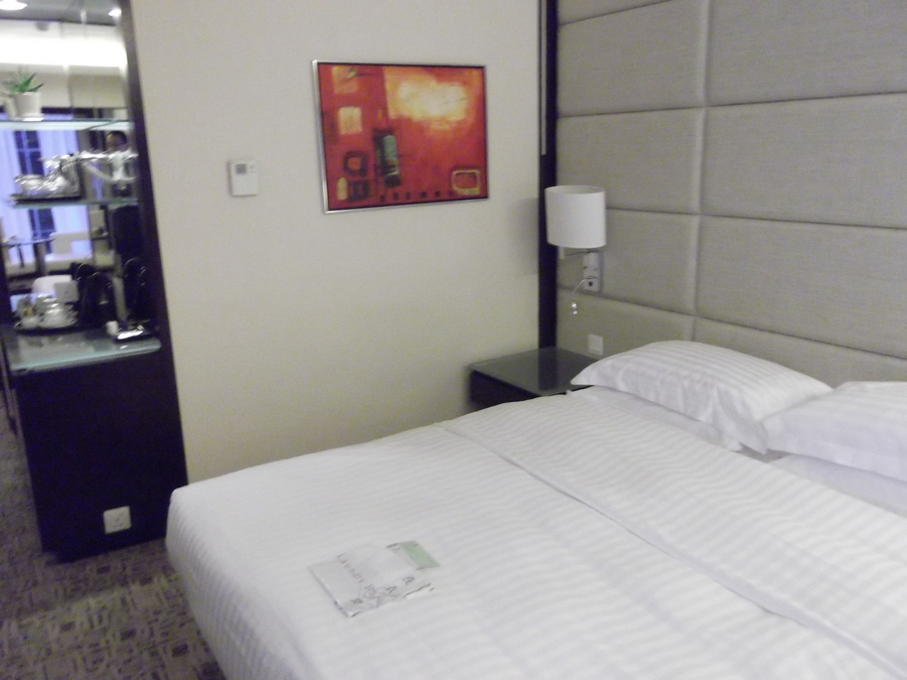 香港出張で利用しました。当日は生憎の台風であまり外には行けませんでした。地下鉄の出口はP2になります。進行方向のまま、真っ直ぐに歩くと近くまで来ます。部屋の状況は写真で確認してください。ネット環境は 有線LANでケーブルも用意されていました。電源のタイプが違いましたが、ミニバーの上に変換コンセントがあり(売り物$38)ましたので、お借りしました。バスタブへの湯量も豊富で直ぐにたまります。テレビはNHKのみ受信可能でしたが、画像は荒い。朝は日本語の新聞が届きました。朝食は地下1階でのブッフェスタイルですが、種類も多いので連泊しても飽きることは無いと思います。九龍駅までエアポートエクスプレス用、無料バスが屋根のあるタクシー乗り場に来るので、台風でも濡れずに乗れました。フロントは中国語か英語で日本語の喋れそうなスタッフは居ませんでした。