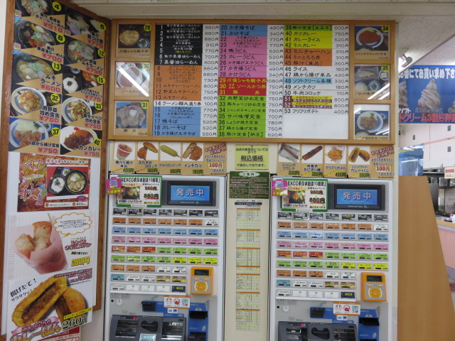 下りの安積PAです。自家用車と大型車が各30~40台程度止められるスペースが有ります。店舗内は御菓子類、土産物、地元の農産品がメインになっています。軽食エリアもあるので不自由する事は有りません。特に土産物は関東近県や東北まで幅広く揃えています。
