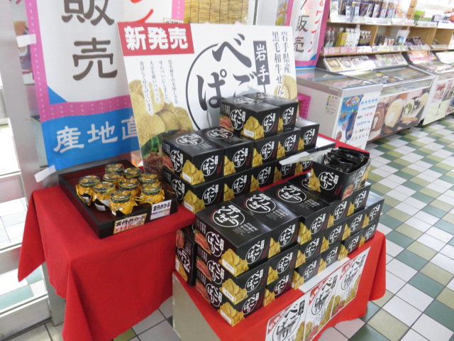 下りのSAとなります。駐車スペースは100台を超える規模かと思いますが、店舗の建屋がPA程度の大きさに感じます。車の通行量も違うので、増えた時に拡張するのかな?流石に牛タン関連の物が多いです。スナックエリアも牛タンや米沢牛のコロッケや肉まんが販売されています。