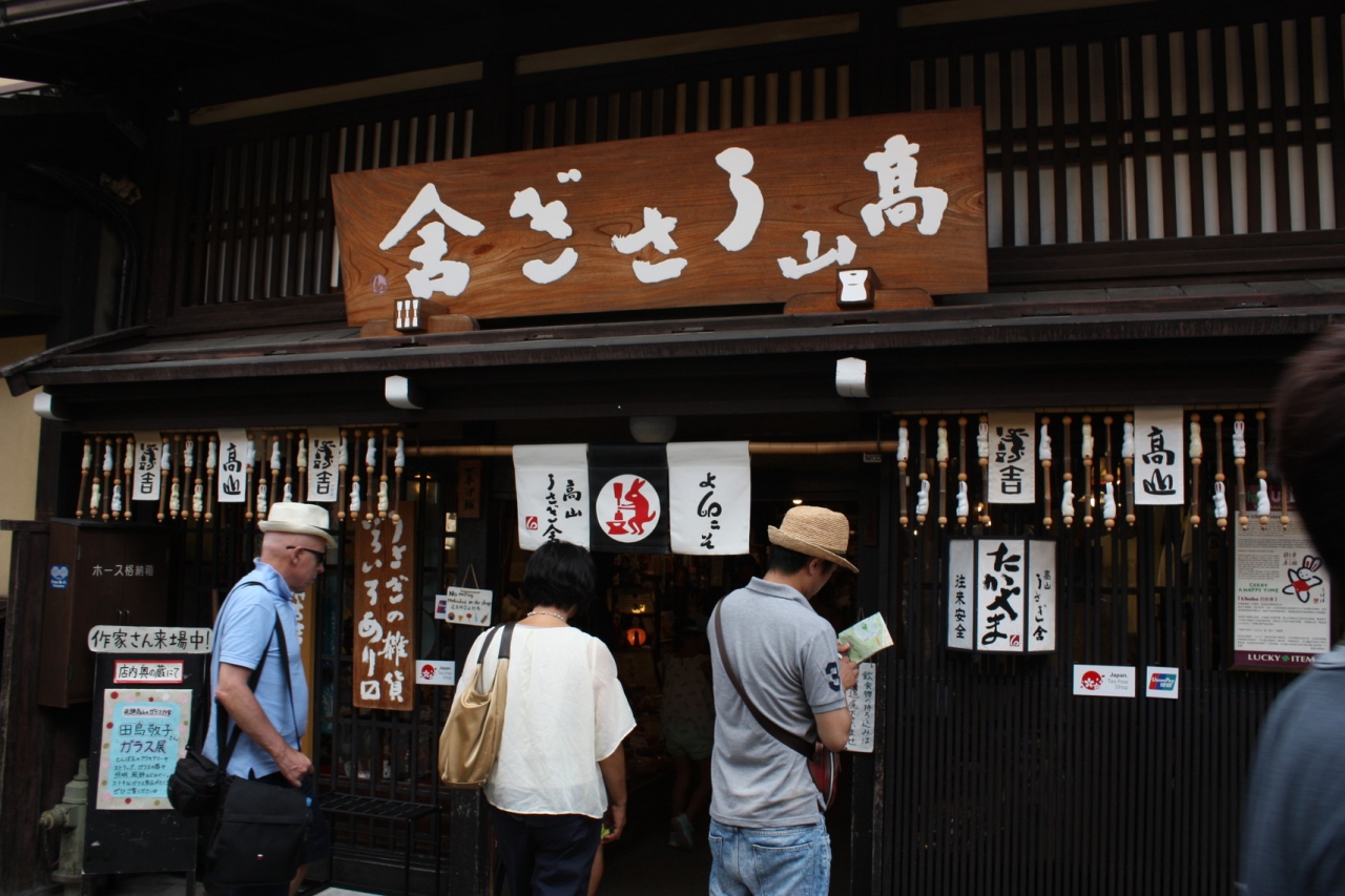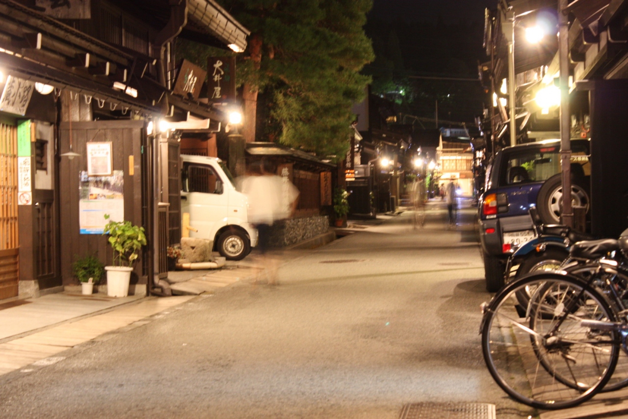 三町筋から陣屋方向へ伸びる道沿いが古い街並みになりますが、殆どが店舗になっています。店舗も入り口が狭く街並みに直行する方向に店舗が広がっている感じです。従って、店舗から出てきた人々で道が込み合っていると言った図式でしょうか?造り酒屋があり、試飲させてくれたり、有料で試飲できたりと言って感じで、外人さん含め気持ちよさそうに歩いている人が多い感じがします。MIGHTY ATOMも少し気持ち良くなって歩いていますた。でも写真を撮るには不向きなので、店舗が閉まってから訪れてみました。時間帯によって楽しみ方はいろいろだと思います。