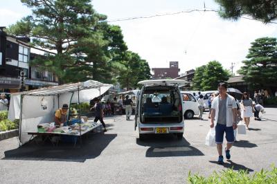 宮川沿いの朝市は川を背にしてテントが並びます。土産物と地元の野菜が主だったものみたいです。これに合わせて向かいの店舗も早々とオープンしています。此方の店舗は午後になると朝市と一緒に店じまいするところが多いです。朝以外は別な店舗で営業中とのことです。陣屋前の朝市は 広場にテントを並べて営業中です。地元の野菜や果物をおばあちゃん達が売っています。試食を振舞ってくれるので、此方歩方が人気かもしれません。但し、テントは30張りぐらいです。御昼ぐらいになると、息子達が軽トラで撤収に来ていました。おばあちゃん達の憩いの場も兼ねている気がします。
