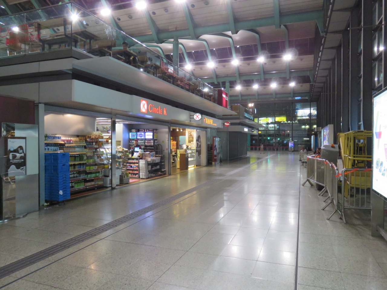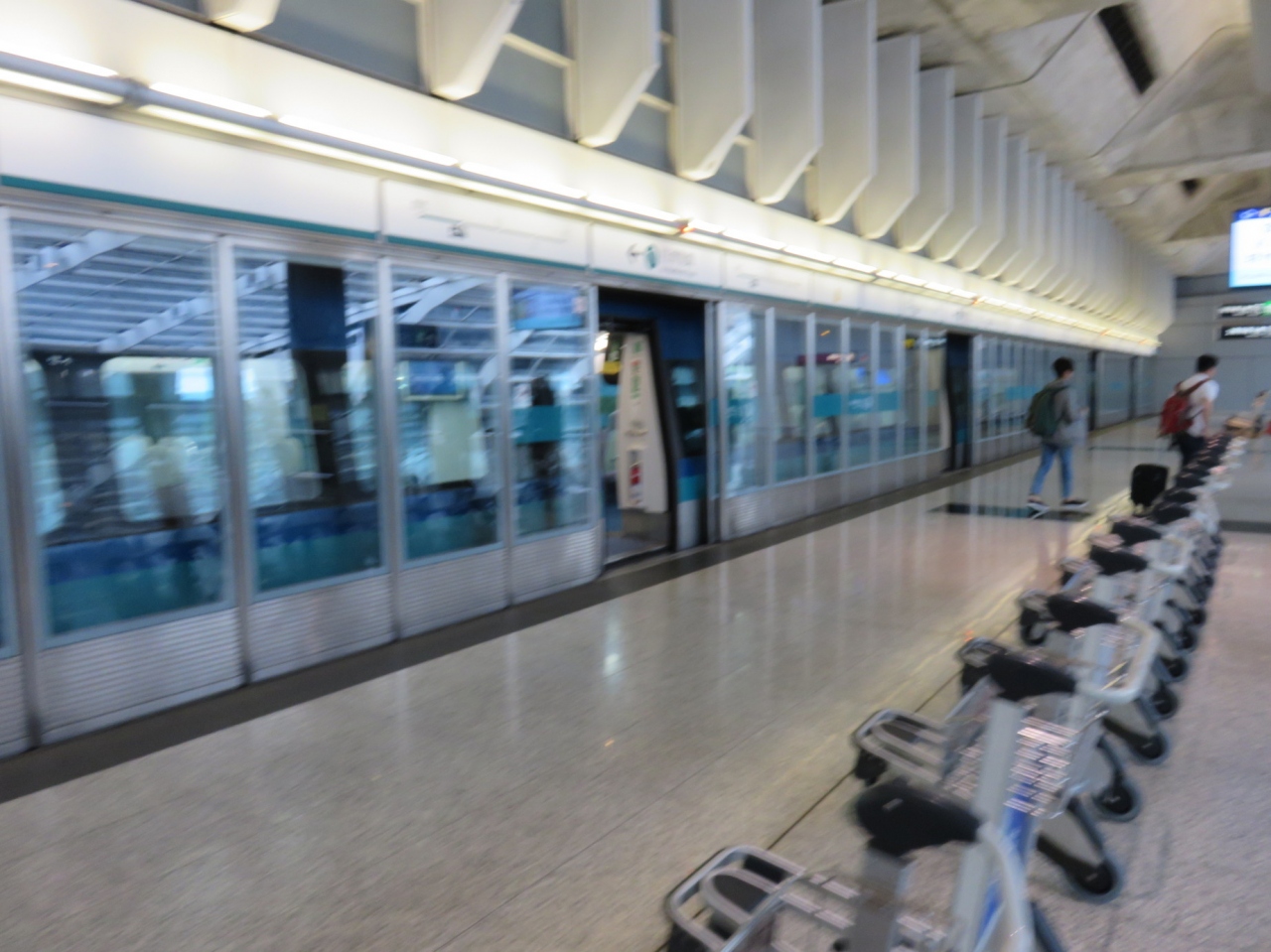 今回も九龍駅からエアポートエクスプレスを利用してきました。空港での食事は高いので、九龍駅のコンビニで購入して、航空カウンター手前のベンチで食事をしている人が多かったです。出国ゲートは2階になりDFS、土産物屋さんや軽食も集中しています。下の登場階は小さな土産物屋さん程度です。2階でカートを借りて買い物を済ませ、エスカレータでカートと御別れし、1階で別なカートを借りて搭乗口まで行くのがお薦めです。搭乗時に放置しておけば、回収して行ってくれます。