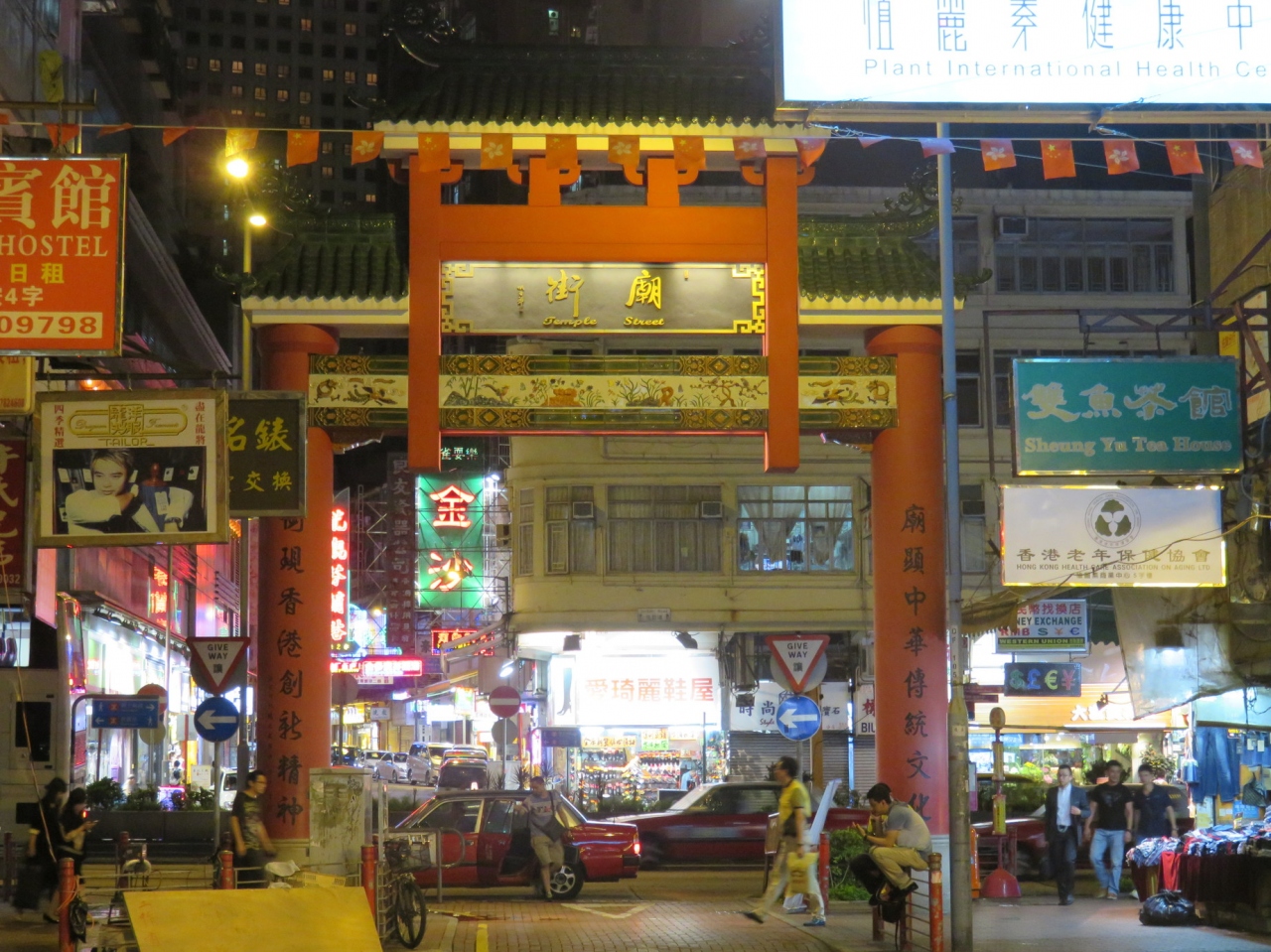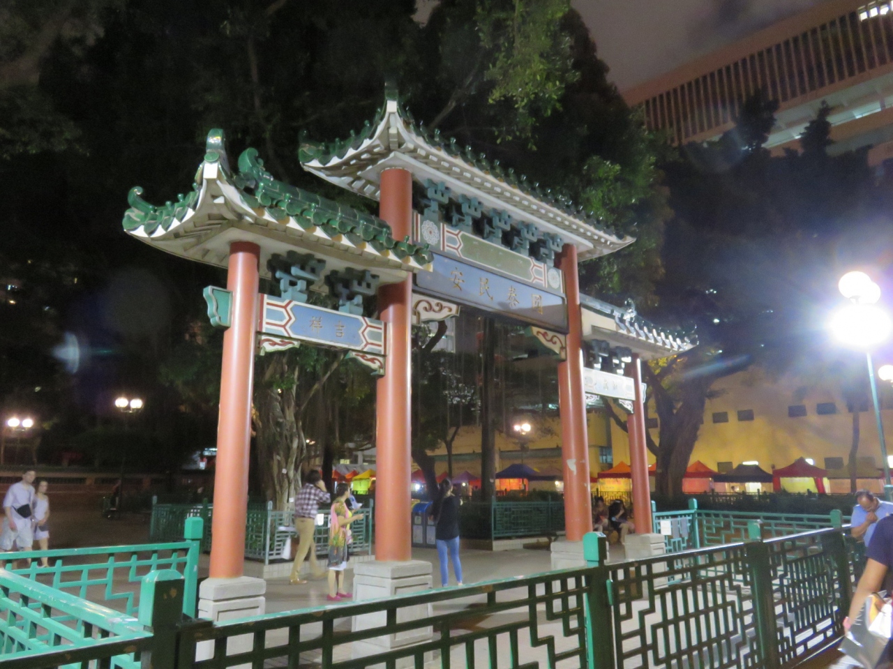 天后廟 (油麻地) の建物に関しては 他の方の書き込みがあるので省略させて頂き、夜の露天に特化いたします。もし、未成年のお子さんと此処を通る時は・・と言うより避けて下さい。此方の建物の正面に大きな広場があり周囲に道路が走っています。この歩道に露店が出現します。此処のエリアだけ「アダルトグッツ」の露店が数多く出ています。箱に入っていない物がテーブルの上に並んでいます。外人の母娘(10代と思われる)がいて、母が娘に長い棒状の動く商品を説明していましたが。日本人とは感覚が違うのでしょうか?流石に写真は撮れないので、鳥居だけアップします。