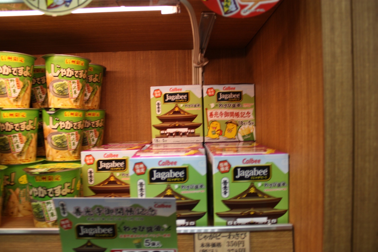 長野の善光寺に行く途中で立ち寄りました。埼玉県から土産は善光寺、御開帳モード全開になっていました。取りあえず、売上の貢献できれば何でもいい感じです。朝なので、余り休憩している方はいない模様。むしろ、先を急いでいるのでしょう。善光寺以外は「サザエさん=世田谷?」がコーナーになっていました。