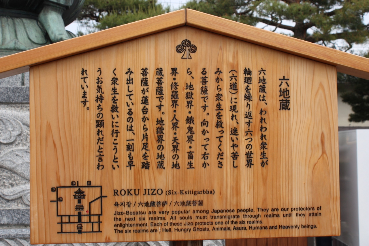 名前からするとお地蔵さまが並んでいるのかと思いましたが、六人の菩薩様が我々庶民を迷いから救ってくださるとのことが判りました。遠くから見ると、同じ菩薩様が6体あるように思えますが、近くに来ると仕草の違いにきずきます。