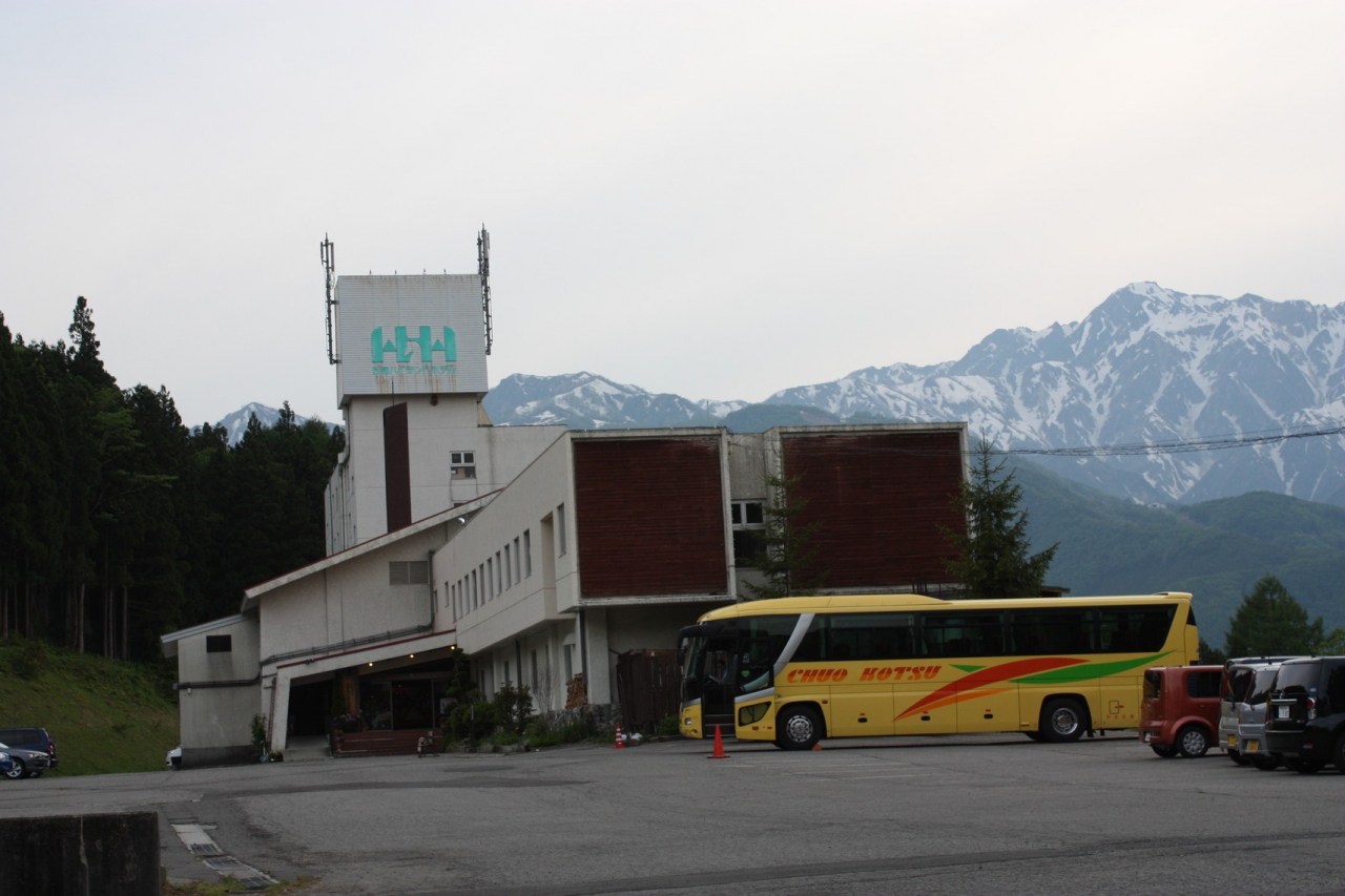 スキー場のある山々からJR白馬駅を挟んで反対側に位置します。建物は6階建てですが、最大の問題点がエレベータです。6人乗りの物が1基のみで、速度もゆっくりしています。スキー客で満員になったら、ストレスになりそうです。それ以外は充実しています。特に夕食、朝食のビュッフェスタイルですが、50種類以上の品数がありました。また、朝と夜で提供するものが違うと言った拘りもあるみたいです。味も十分満足できました。温泉は白馬のスキー場を眺める感じで、露天風呂もあり満足しました。更に冬以外は庭の花々、朝の散歩、夜のお話会、熱気球ライドなど、趣向は盛りだくさんです。施設の所々に手作りの作品が添えられており、家族的な部分が見え隠れします。ホテル自体は手入れがされている物の年季が入っております。