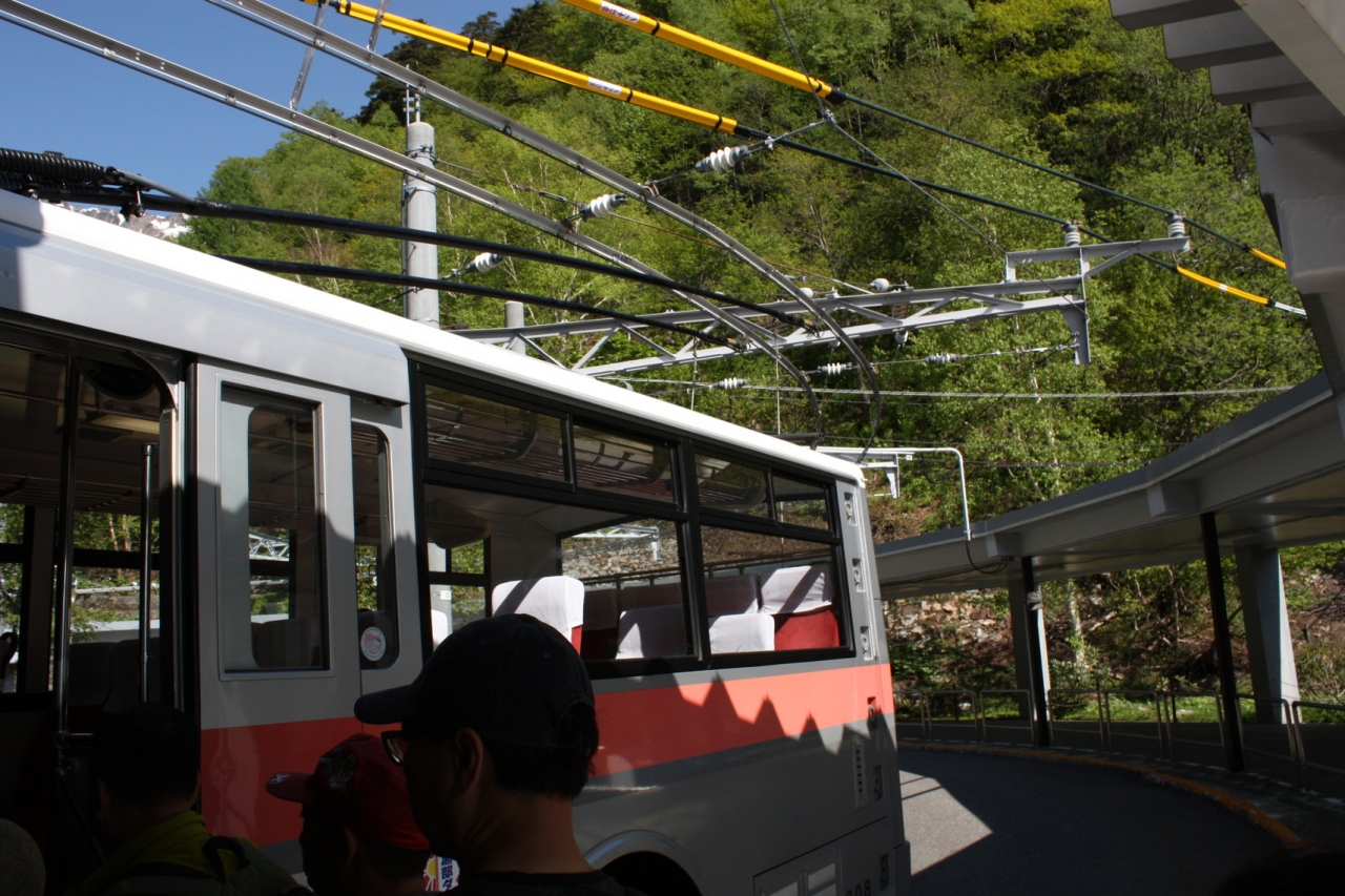 アルペンルートに行くために乗車しました。トロリーバスが間隔を開けて発車します。バスではなく電車のカテゴリーに入るそうです。途中ですれ違いますが、単線区間の電車と同じようにタブレット(通行許可)を交換していました。景色はトンネルなので壁ばかりです。乗車される場合は先頭の椅子に坐ると面白いです。