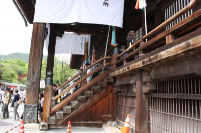山門に上がる為には数十分の行列を覚悟しないと無理そうです。上に上がった人は回向柱に触る為に並んでいる人が面白く、上から撮影していると思われます。そのため、一度上がると中々下りてこないのかと思われます。しかし、これだけの人が上がっても壊れないのですから大したつくりだと思います。