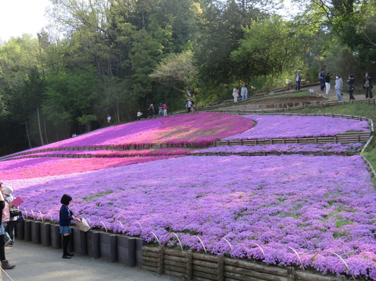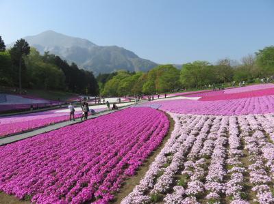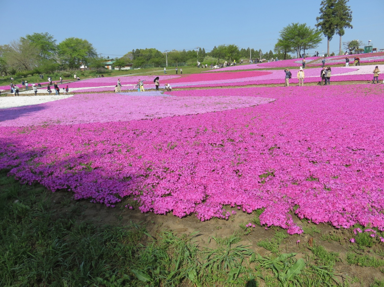 西武線のポスターを見ていたら、満開情報が出ていたので、早朝から車で出かけました。現地に7時半ぐらいに到着しましたが、公園内の駐車場は規制のため入れず、臨時駐車場(500円)で無事に駐車完了。此処から無料の送迎バスで公園内に入り公園内のバスロータリーから徒歩で公園の入り口に、7時59分くらいに到着。係りの人が「ここまで、ここまで」と言って我々の数名後ろで、人を分けている様子でした。入り口で入場料を払おうと一人300円を握っていたのですが、8時前なので100円以上の協力金を箱に入れてもらえればいいですとのことでした。公園内は それなりに人が入っていて少し込み合っていました。エリアごとに咲く時期を調整しているようで、エリアごとにばらついていました。係りの方々が、丁寧に雑草や枯れた花の撤去など手入れをされていました。此の方々のおかげで、綺麗な芝桜を堪能できました。9時半ぐらいには駐車場に戻りましたが、送迎バス待ちの列が長くなっていました。今回は 時間が早かったので見られませんでしたが、12時15分に西武秩父駅付近(秩父鉄道の御花畑駅)を熊谷方向からC58(蒸気機関車)が走ってきます。
