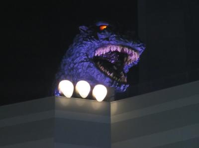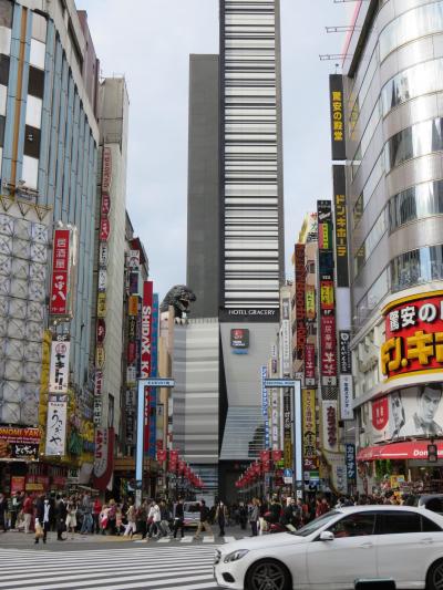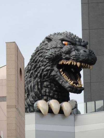 今回は ネットで書かれていたので確認しに行ってきました。新宿駅東口を出て靖国通りに向かって歩きました。ドンキから旧コマ劇場方向に向かおうとすると皆さんカメラを向けていました。一眼レフを構える人が、周囲の人も「何を撮るのかと思い、狙っている方向を見るとゴジラが襲ってくる・・」訳ではないのですが、皆さん急にスマホやタブレットでカメラマンになっていました。ゴジラの周囲も回って見ましたが、靖国通りからでないと高いビルに阻まれてゴジラヘッドは見えませんでした。初代ゴジラの実物大モデルだそうですが、高層ビル化したので、下手にビルを倒すとゴジラも巻き添えになりそうです。