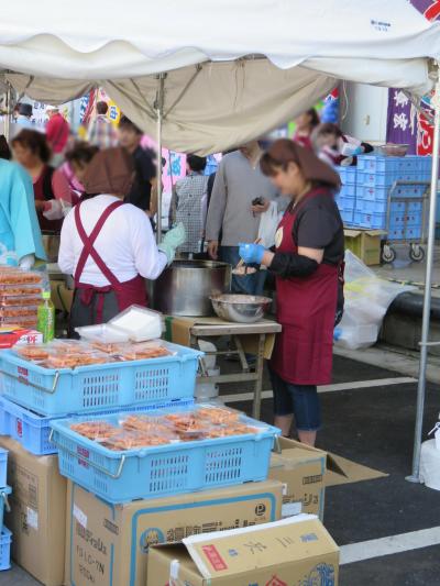 昨年は不漁のため中止となりましたが、今年は盛大に行われていました。朝8時スタートですが、30分遅れでも大変な行列になっていました。まず、駐車場が大変です。河川敷の駐車場が一杯になると中学校の校庭へ、更に小学校の校庭に誘導されます。今回は渋滞が有ったので小学校の校庭に滑り込めました。9時半ぐらいにならないと駐車場から出る人が居ないので大変です。更に会場での買い物が、更に凄い事になっていました。桜エビのかき揚(一人6枚まで、単価300円)を購入するのに長蛇の列です。約1時間は並んだと思います。生シラスと生の桜エビを購入するのに40分でかな。此方は別働隊に購入してもらいました。そのほか魚介類もありましたが、1時間並んでだけで疲れ切ってしまい、お祭りなのか買いだしなのか分からない状態になりました。生ものを購入される方はバカンスクーラーと保冷剤が必須です。出来れば、車にバカンスクーラーを置き買物用に保冷袋を持つのがよろしいと思います。お子様向けには漁船体験もあります。有料で2~300円ぐらいだった気がします。トイレが大渋滞ですので注意が必要です。